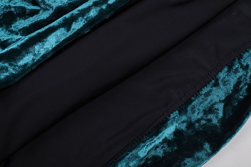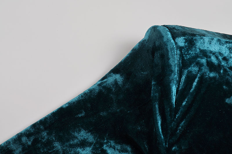 Sexy Deep V Long Sleeve Right Shoulder Pleated Velvet Dress