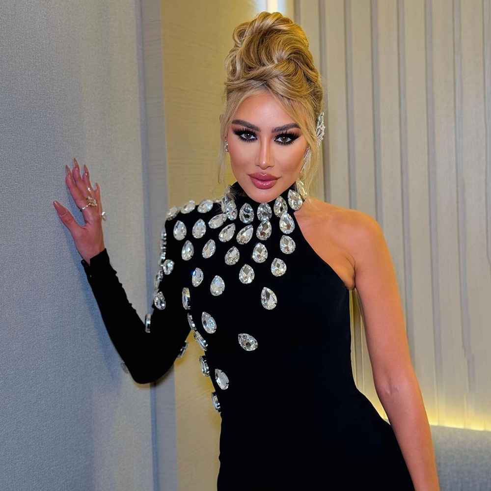 Sexy One-Shoulder Long Sleeve Crystal High Slit Party Bandage Dress