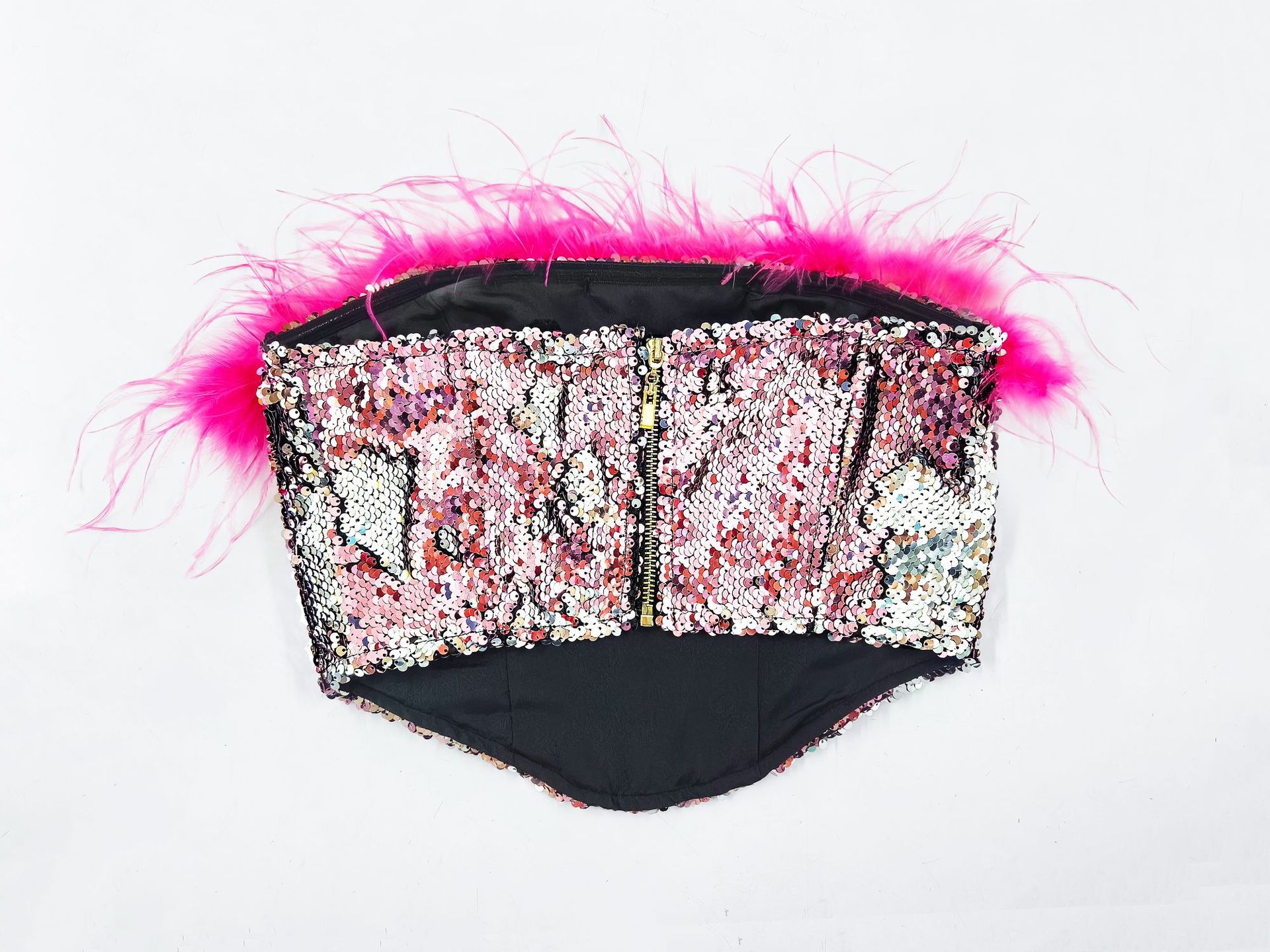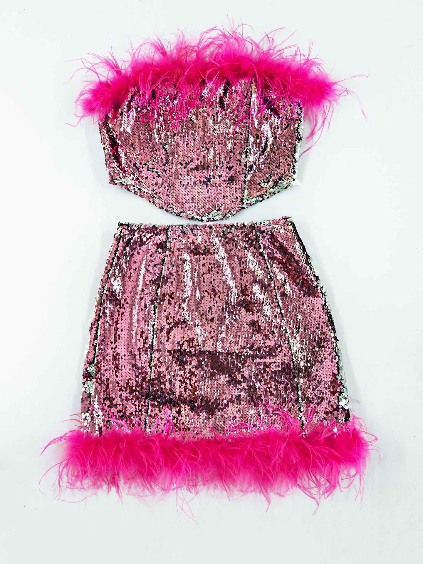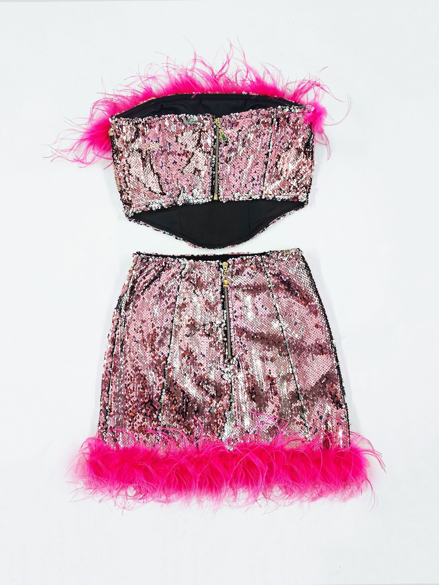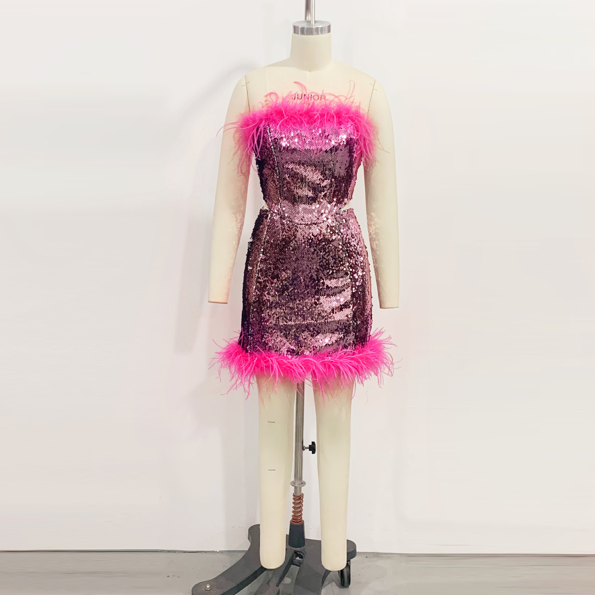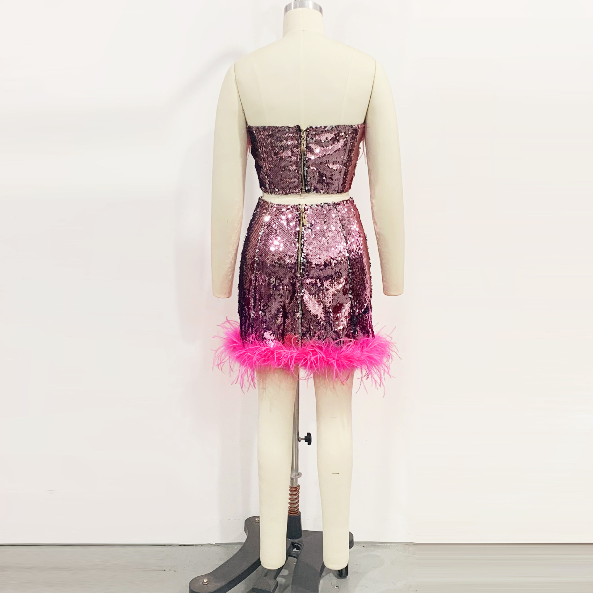 Sexy Ostrich Feather Sequined Suit Skirt Women's Party Dress