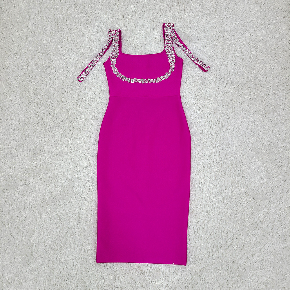 Sexy Sleeveless Square Collar Diamond Chain Bandage Dress