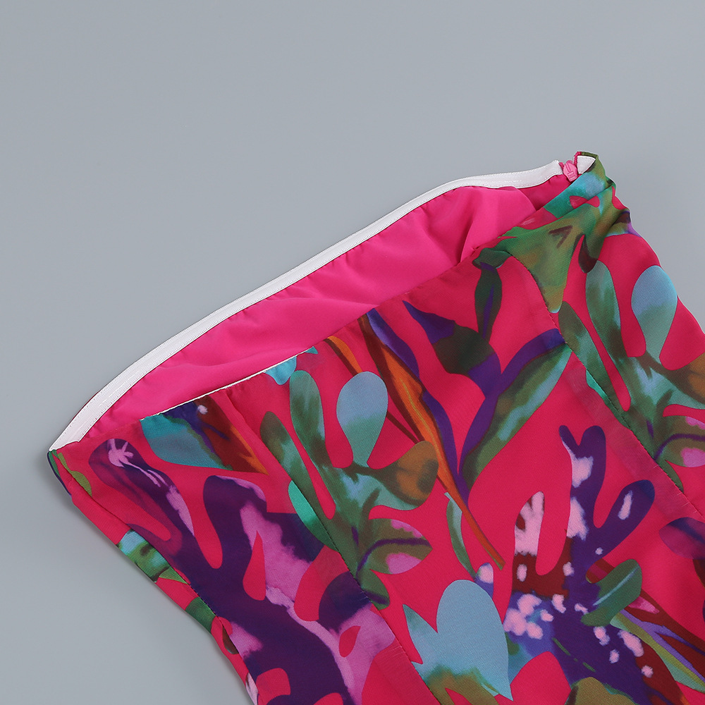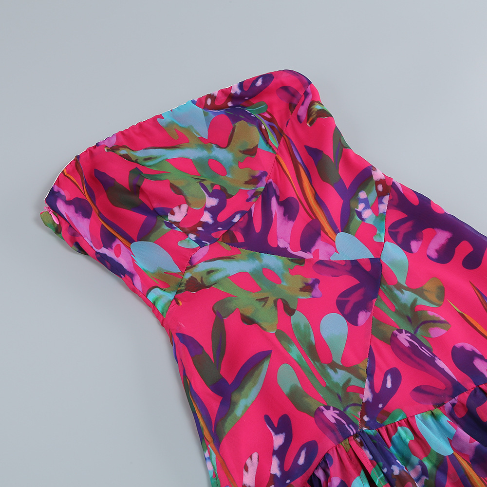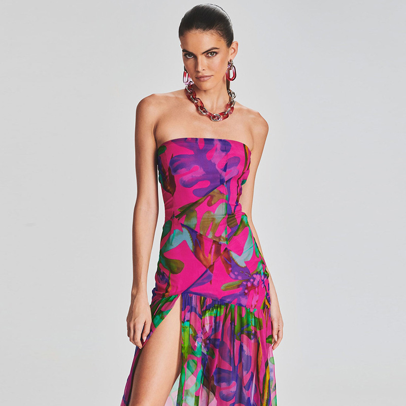 Sexy Tube Top Split Long Dress Seaside Vacation Romantic Printed