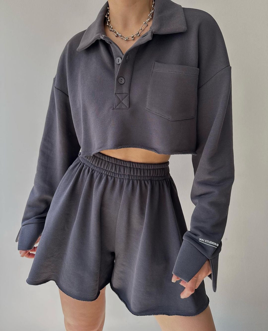 Product Name :Short Casual Cardigan Top Drawstring Shorts Suit