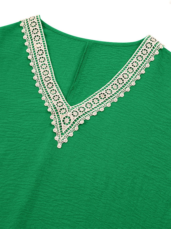 Short Sleeves Belted Split-Joint V-neck Mini Dresses