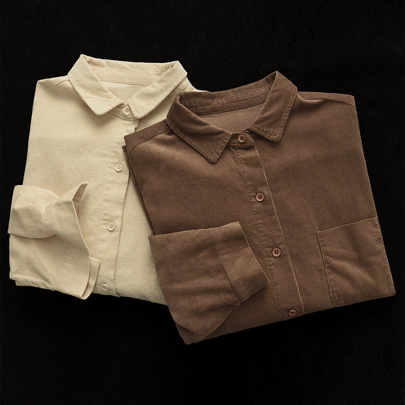 Simple Solid Color Long Sleeve Corduroy Shirt