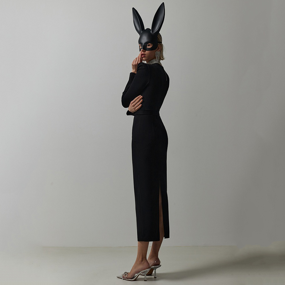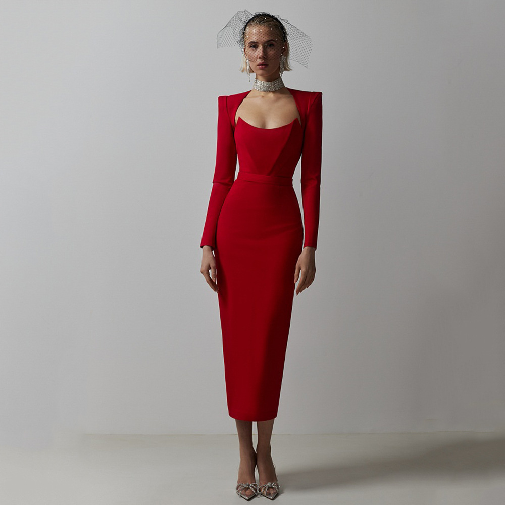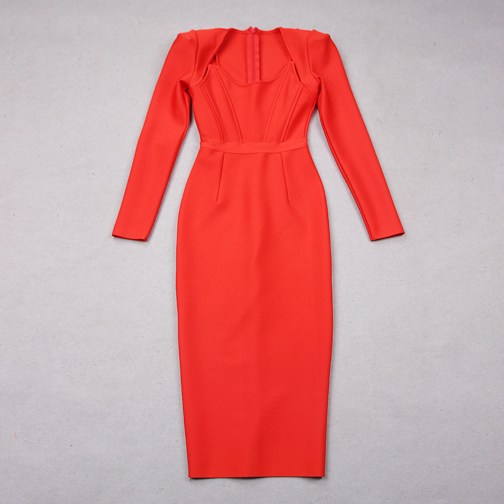 Simple Solid Color Sexy Long Sleeve Bandage Dress Party