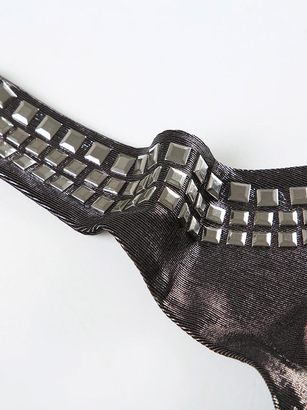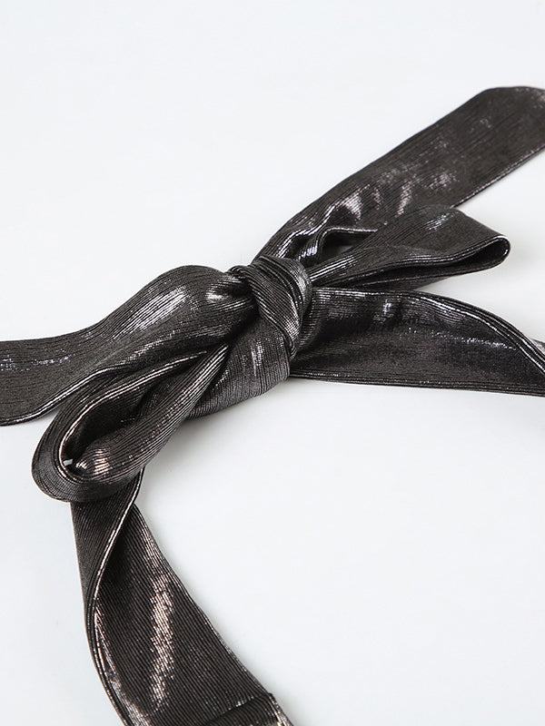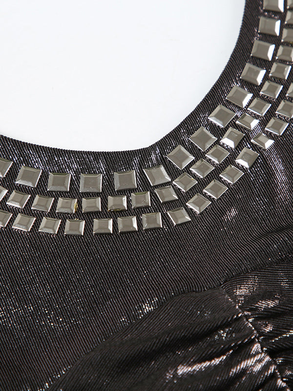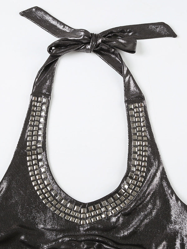 Skinny Sleeveless Backless Pleated Rhine Stones Tied Halter-Neck Vest Top