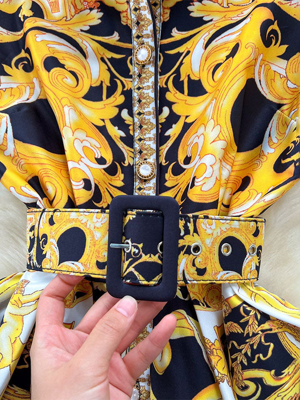 | Feature | Buttoned . Belt Buckle . Floral Printed . Contrast Color |