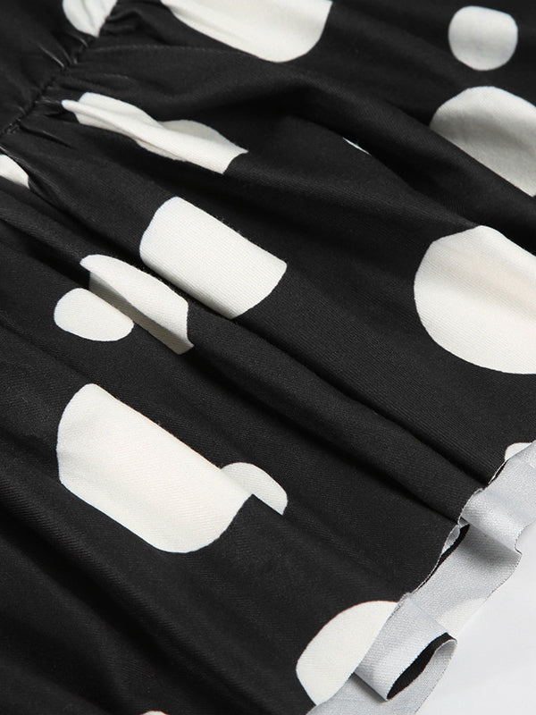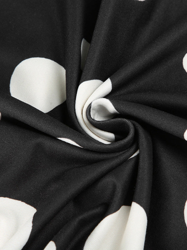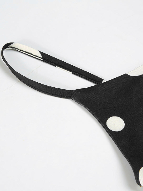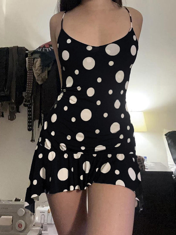 Sleeveless Contrast Color Pleated Polka-Dot Spaghetti-Neck Mini Dresses