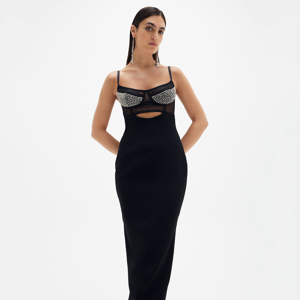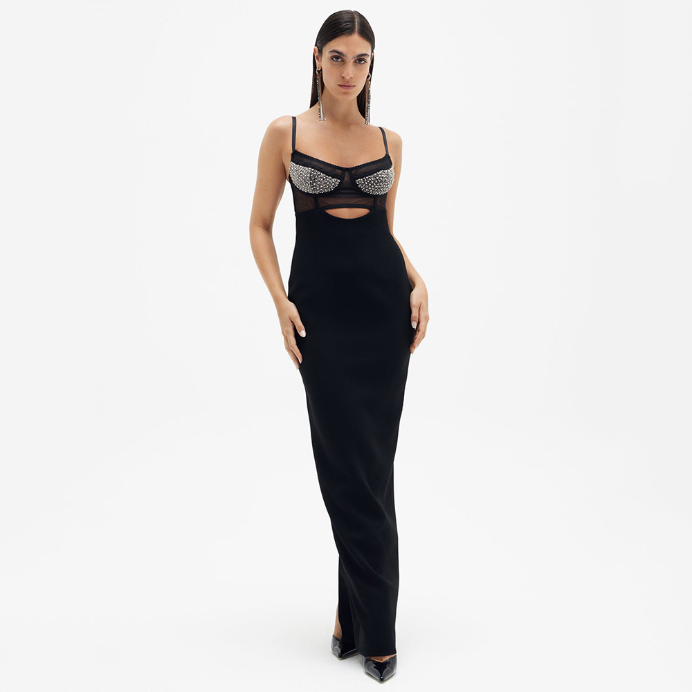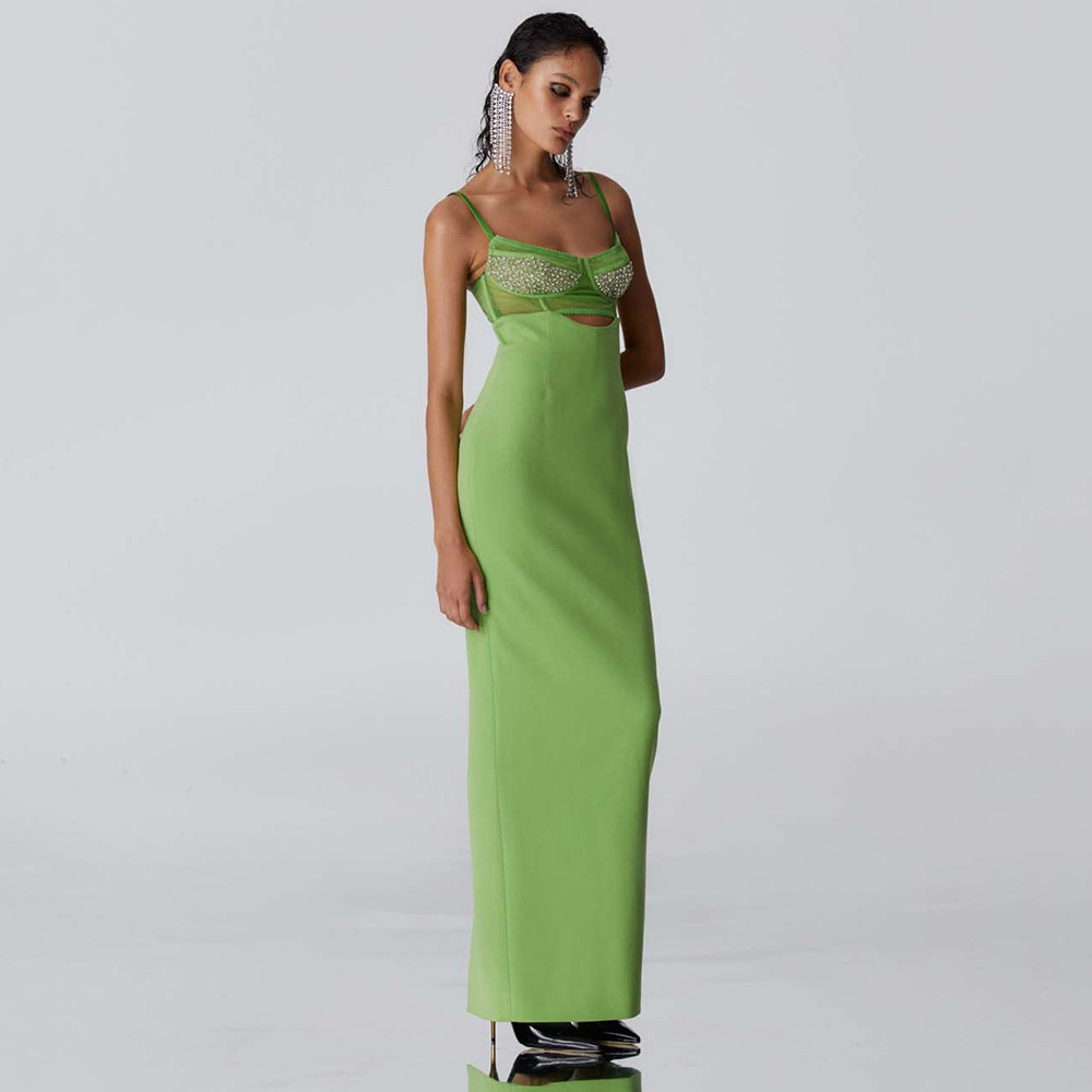 Slim Bandage Dress Sexy Sleeveless Diamond Hollow Women