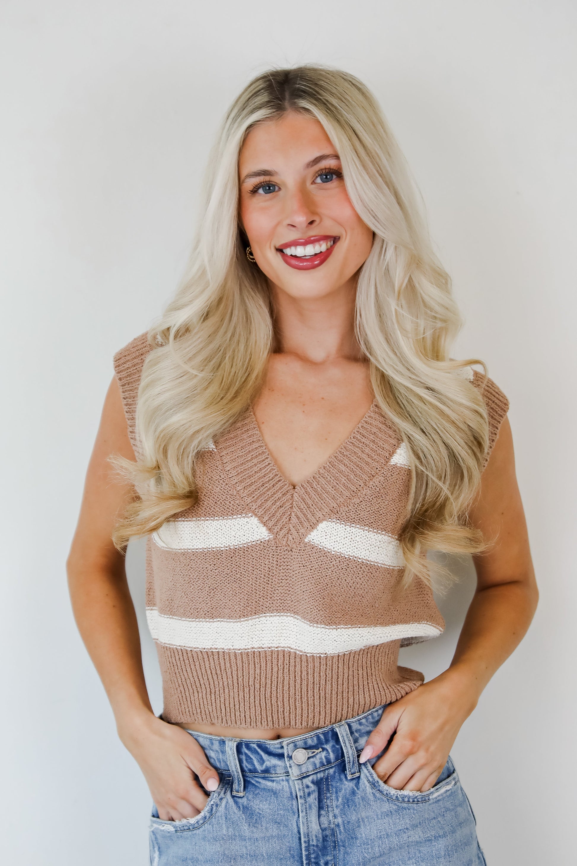 Sophisticated Staple Taupe Striped Sweater Vest - DU DEAL