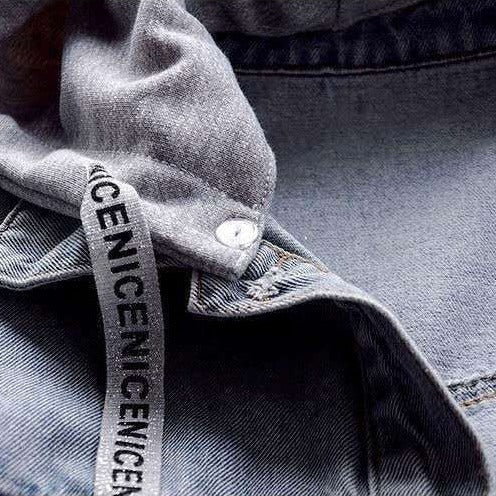 New Korean version hooded denim jacket women's short fashion big pocket jacket