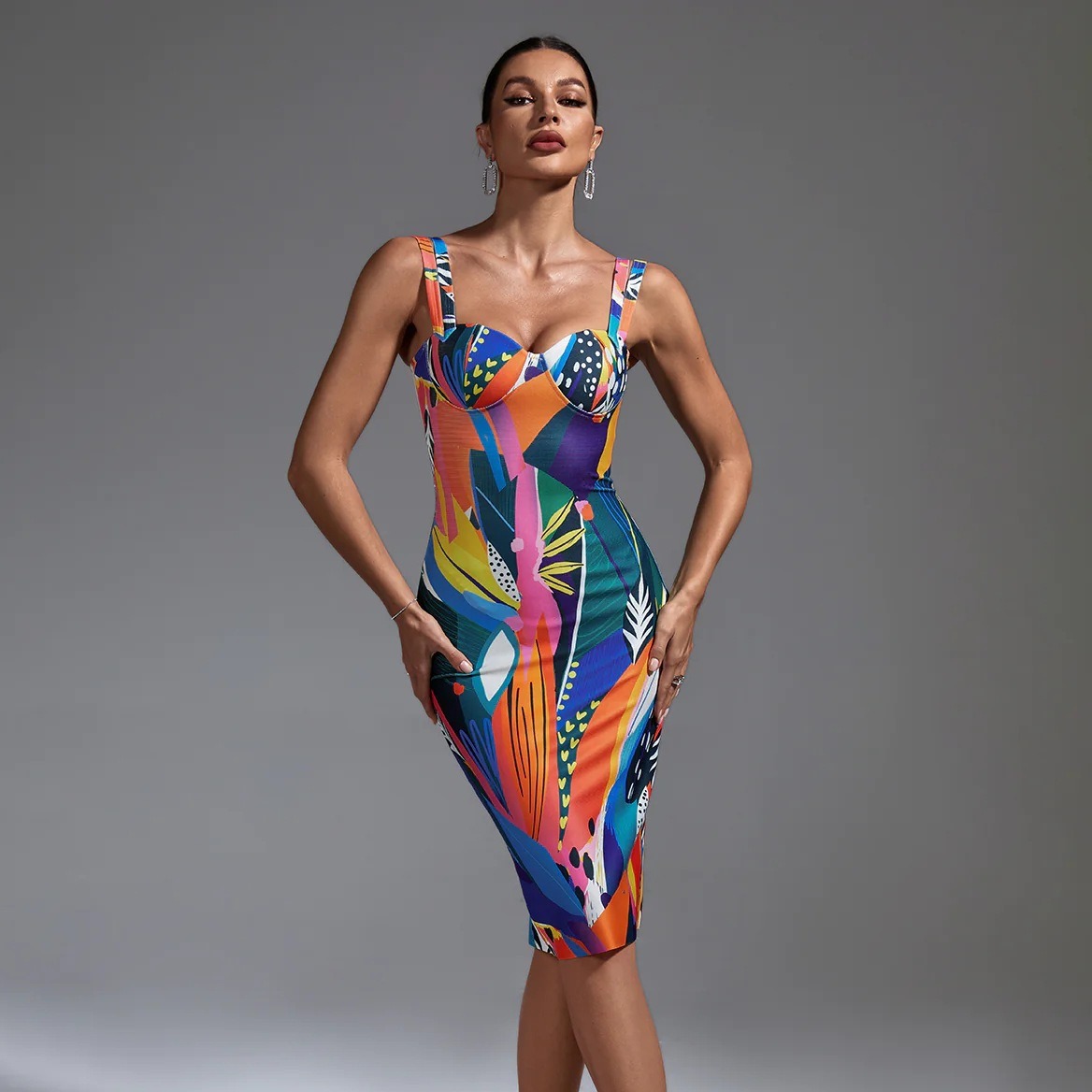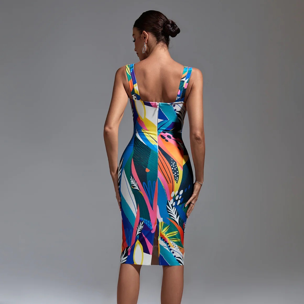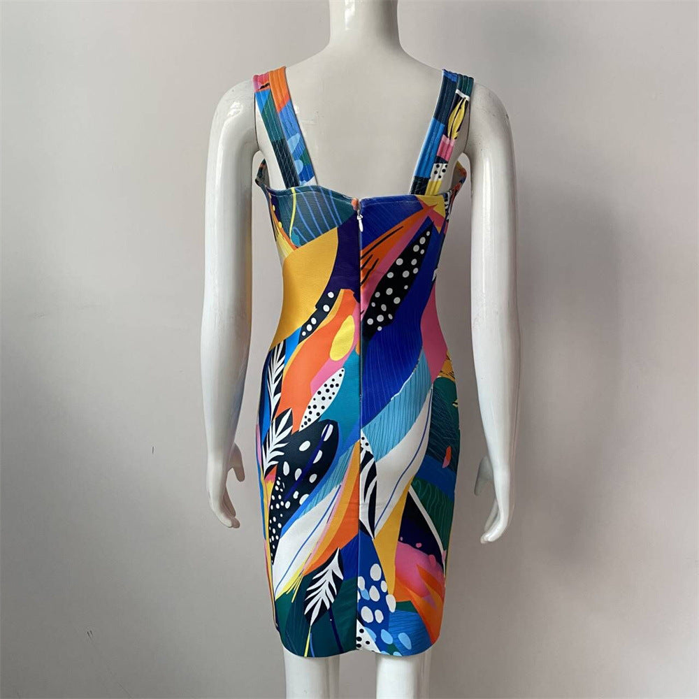 Spaghetti-Strap Floral Print High Waist Slim Dress Banquet