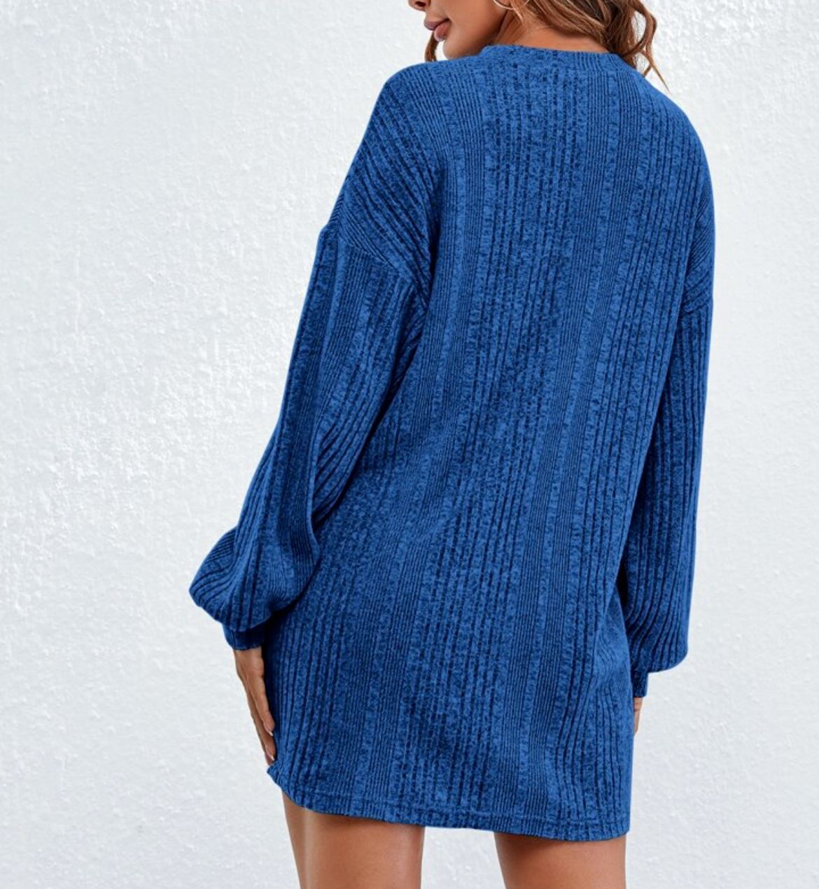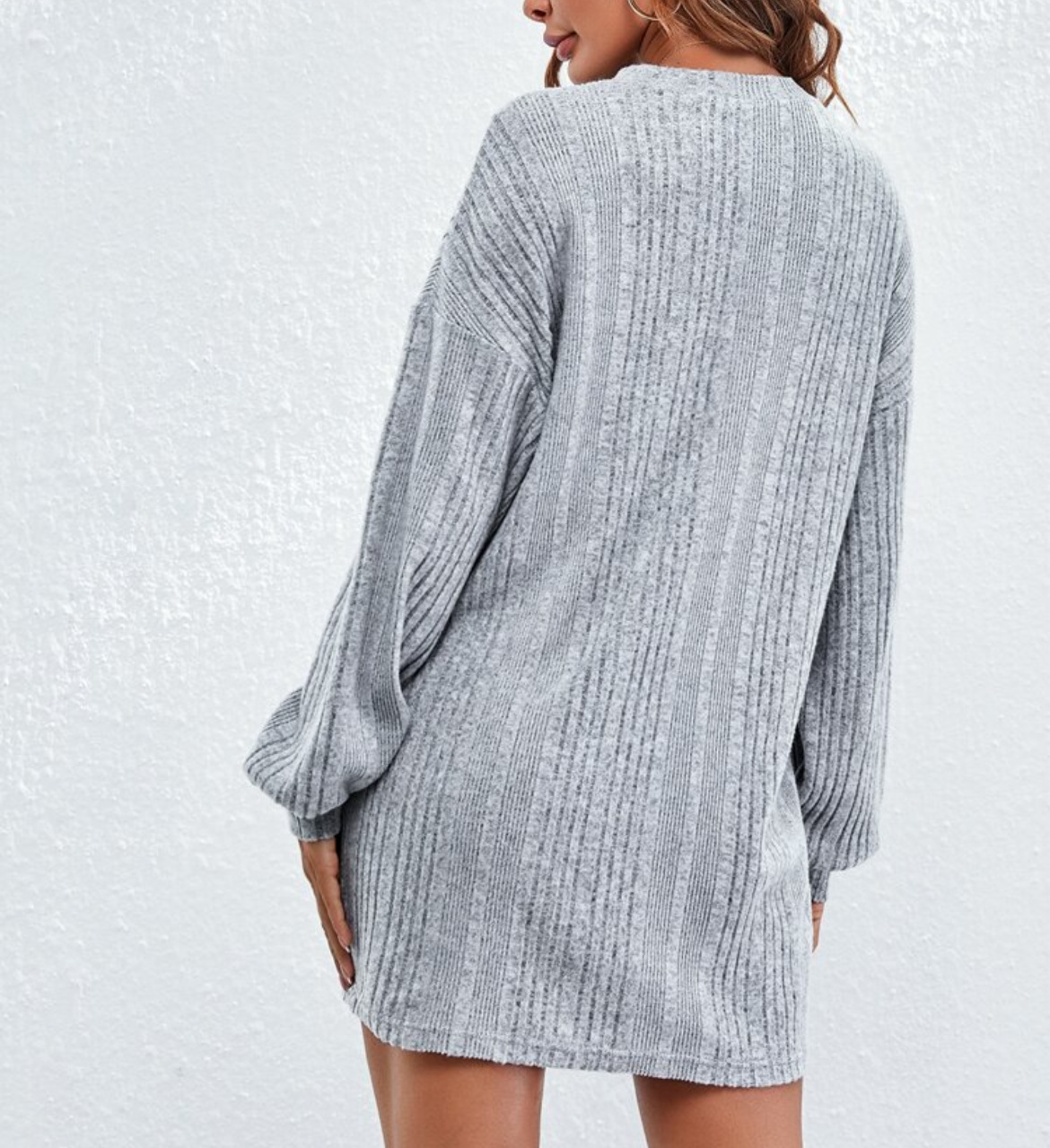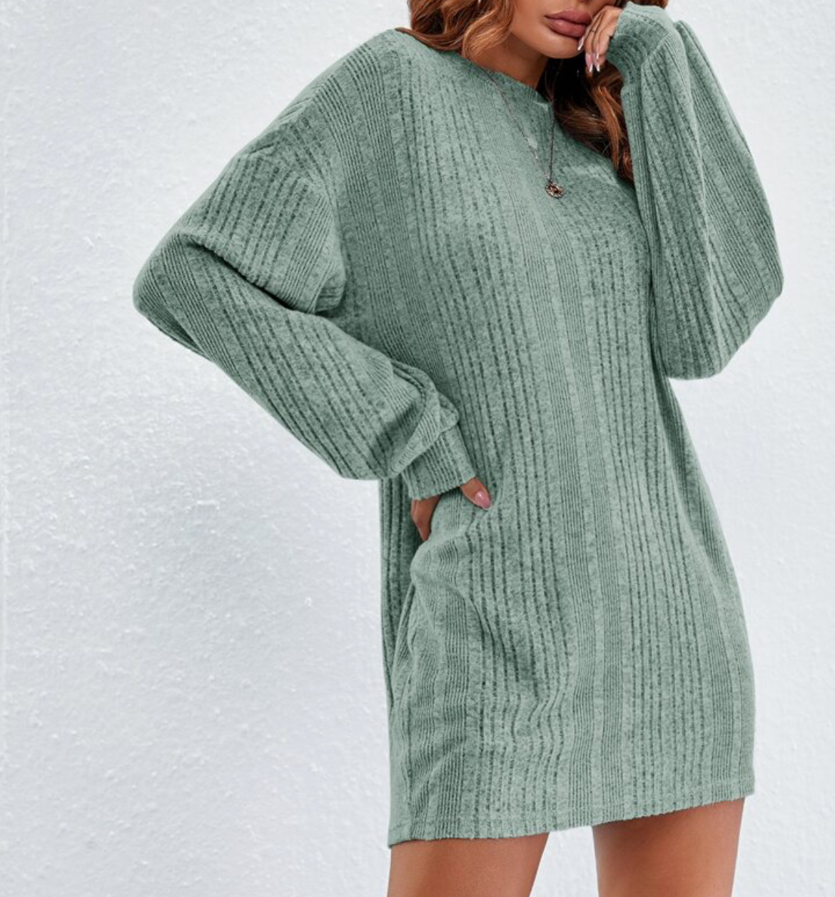 Spring and Autumn women's knitted pullover round neck long sleeve dress