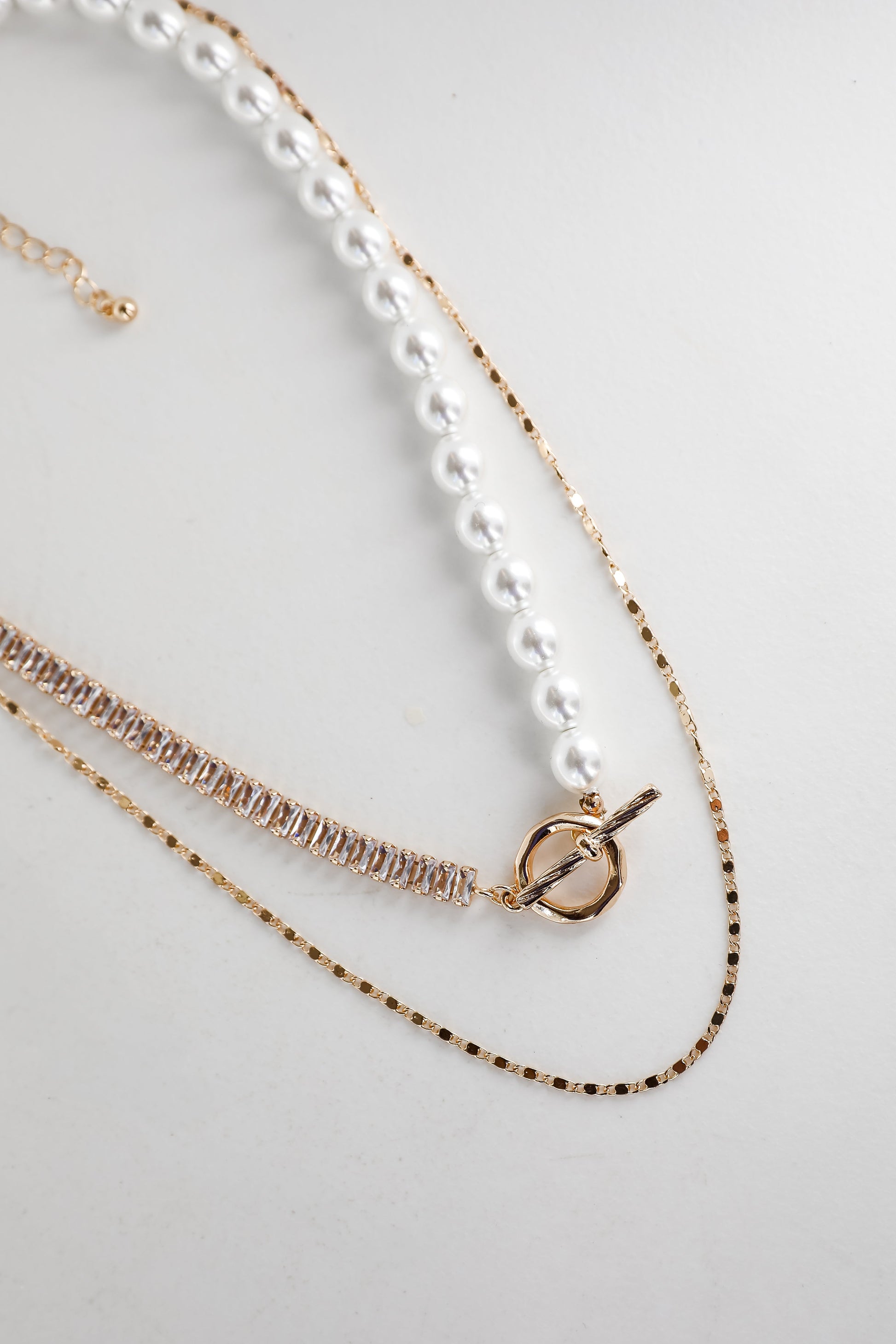 The Stella Gold Rhinestone Pearl Layered Necklace is absolutely perfect and will make any look even more so! This trendy necklace features two layers of chains with rhinestones & pearls with a toggle closure. Style the Stella Necklace with any outfit to instantly upgrade your look!