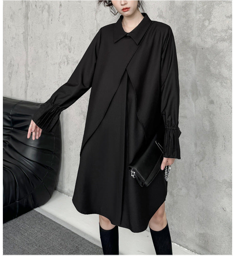 Street Style Fake Two Piece Button Long Sleeve Midi Dress