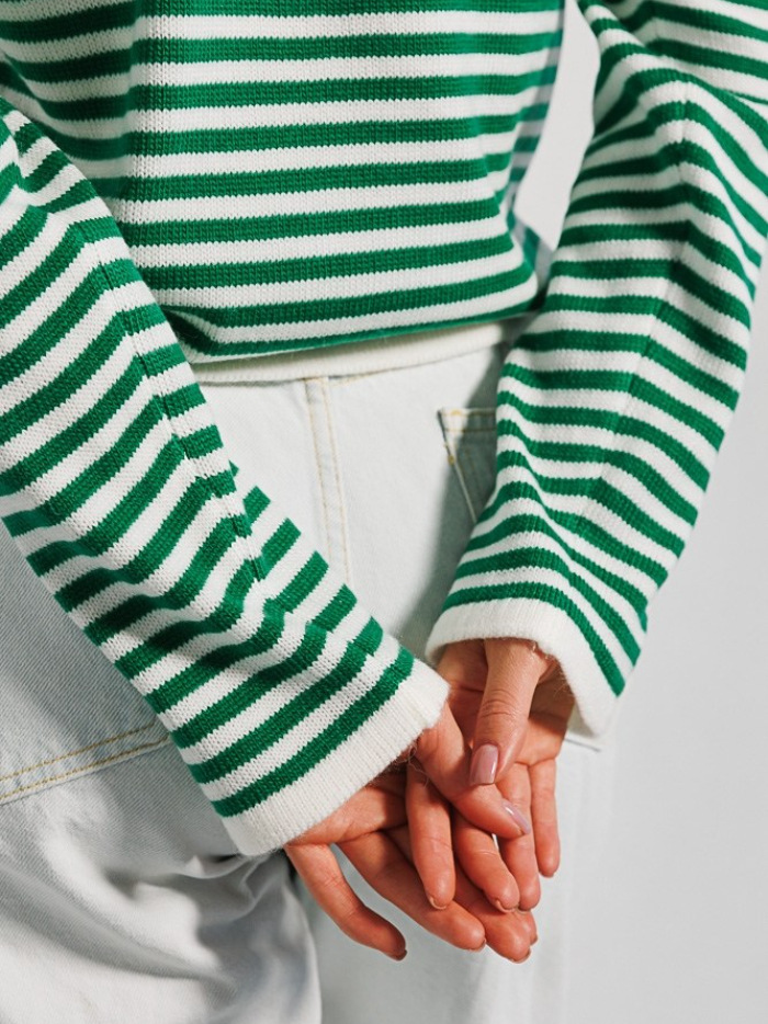 Striped sweater autumn thread contrast color round neck pullover women's knitted striped top
