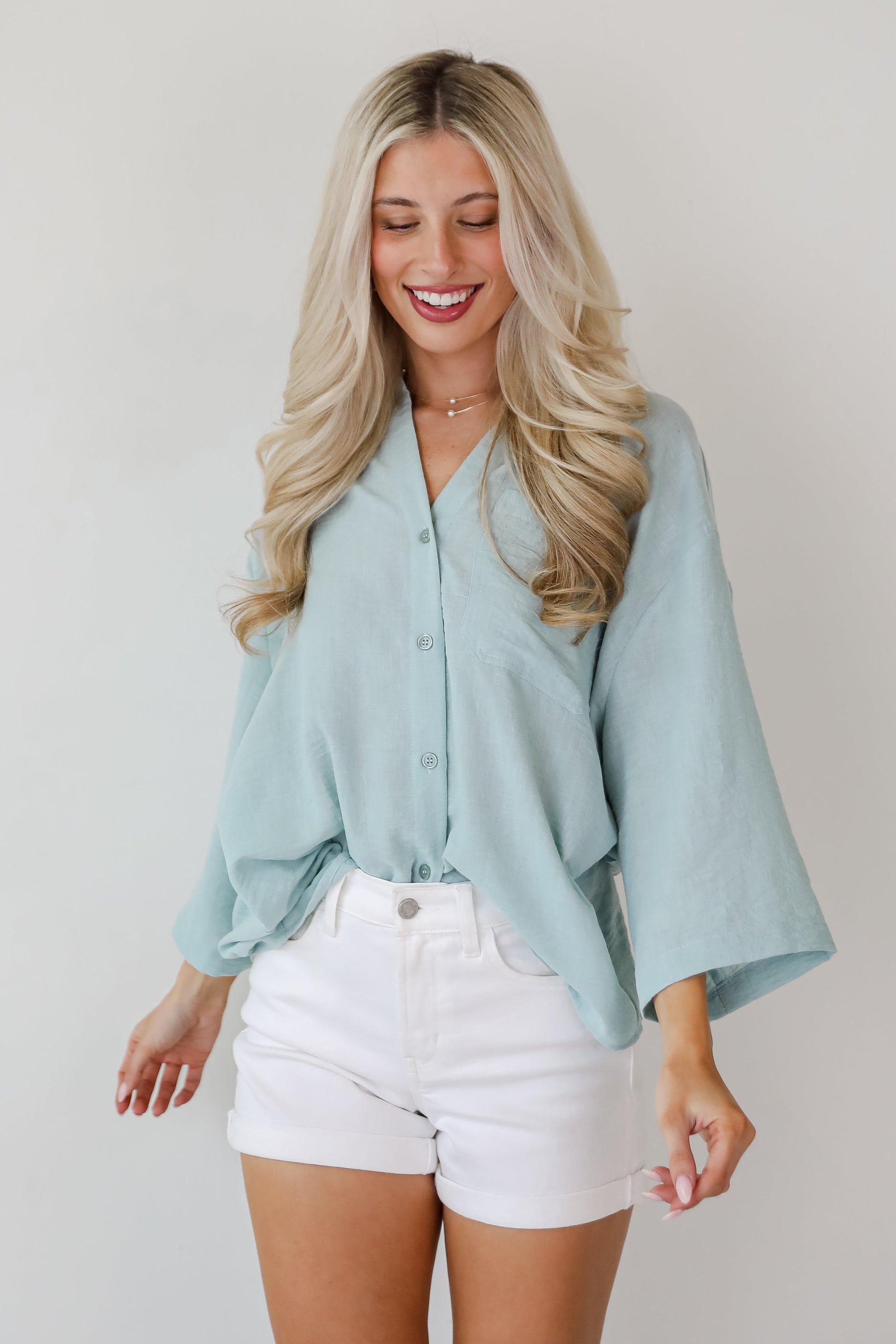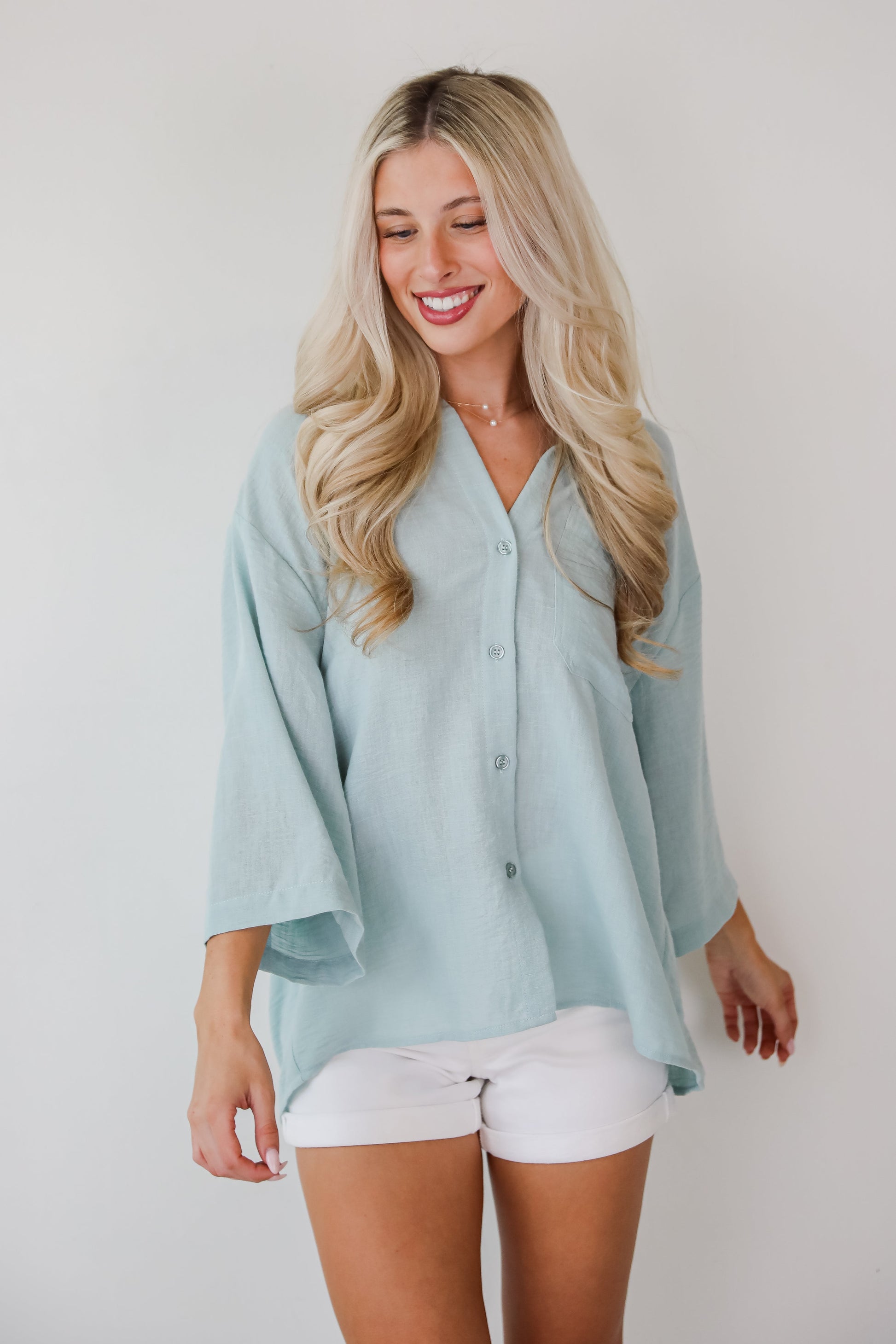 Sunny Mentality Sage Blouse - DU DEAL