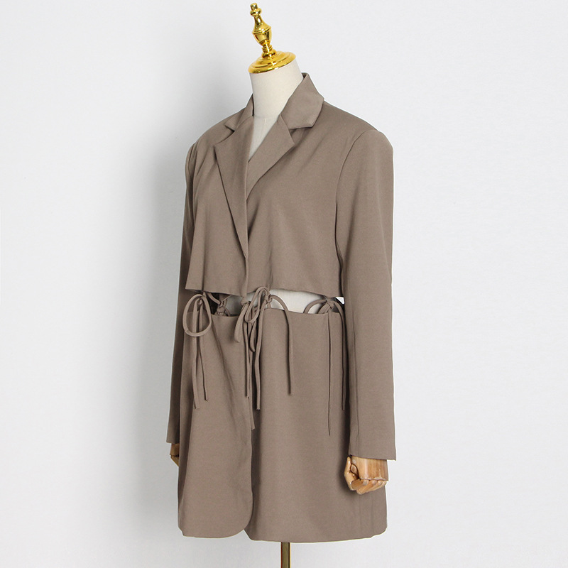 Temperament niche design sense suit women's 2024 spring new fashion fried street long sleeve hollow strap suit coat