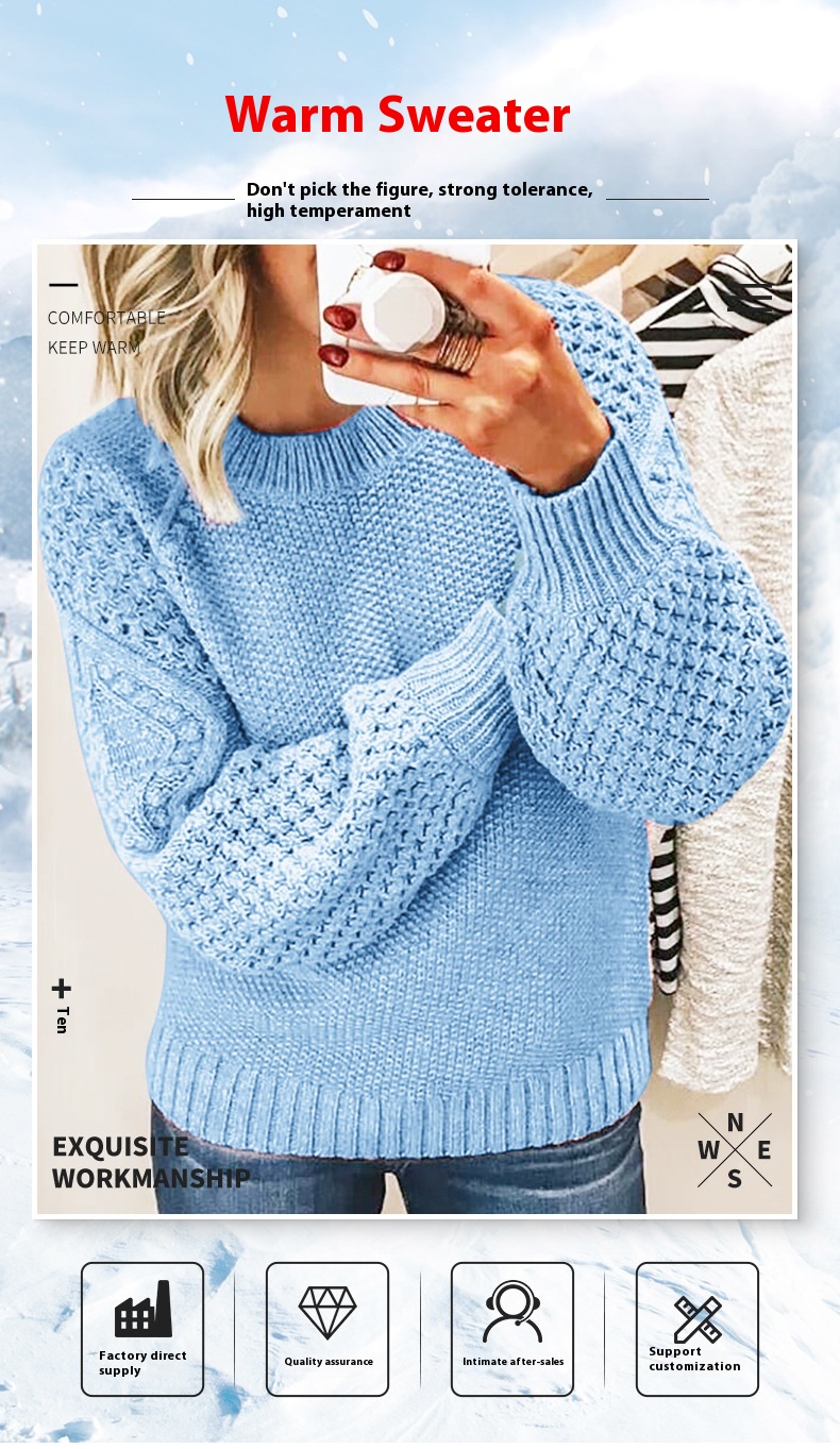 Thick warm sweater solid color outerwear knitted pullover women's sweater