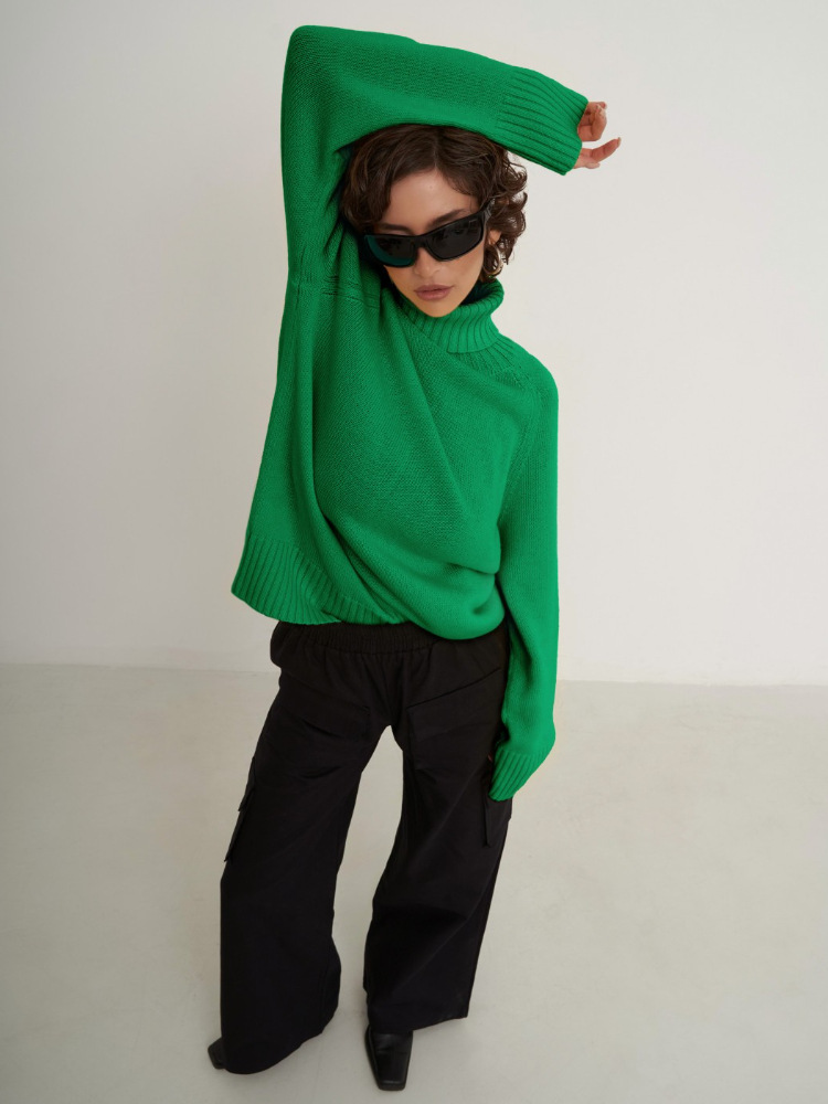 Turtleneck sweater autumn and winter elegant commuter solid color raglan sleeve women's knitted blouse