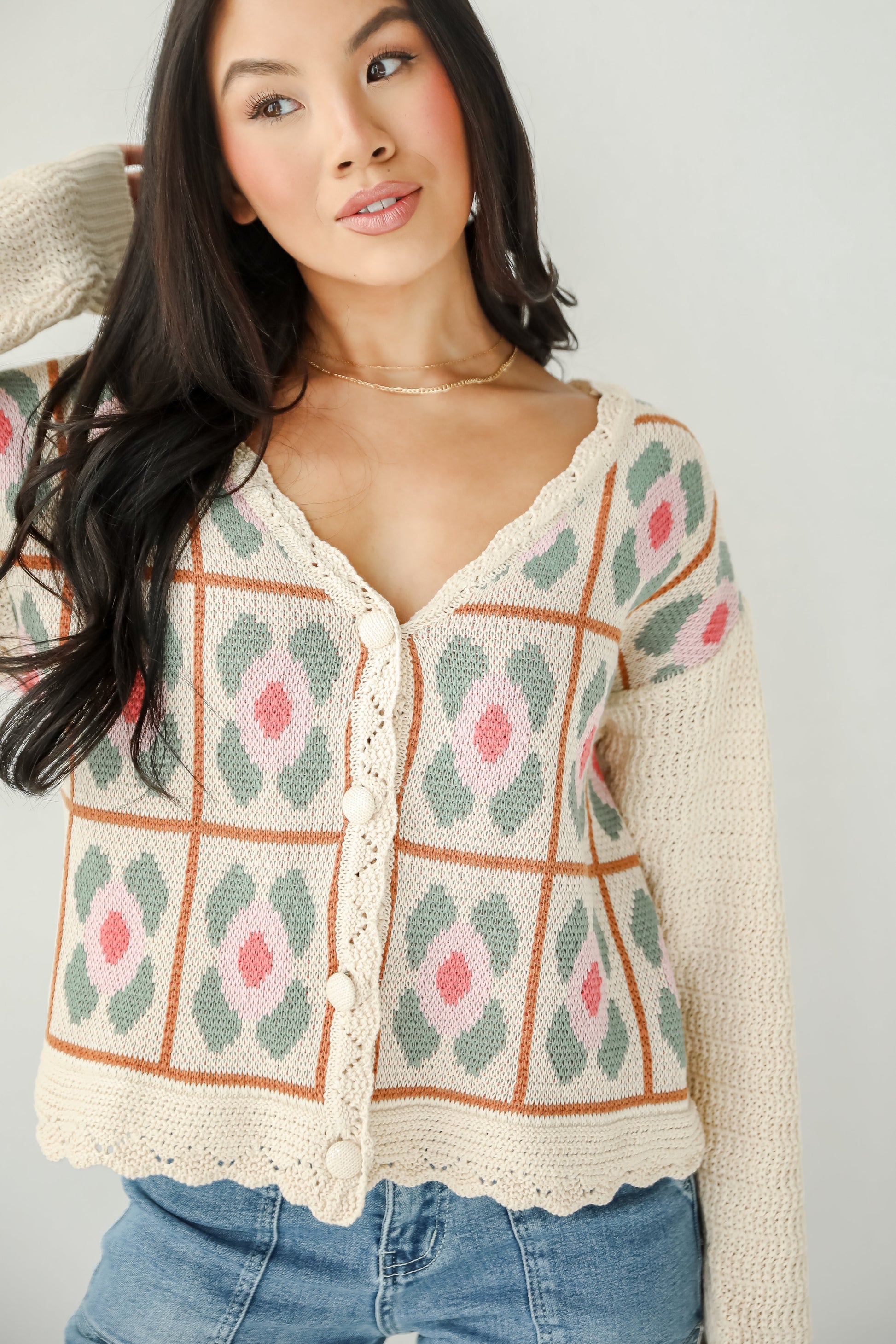 Ultimate Sweetness Ivory Floral Sweater Cardigan