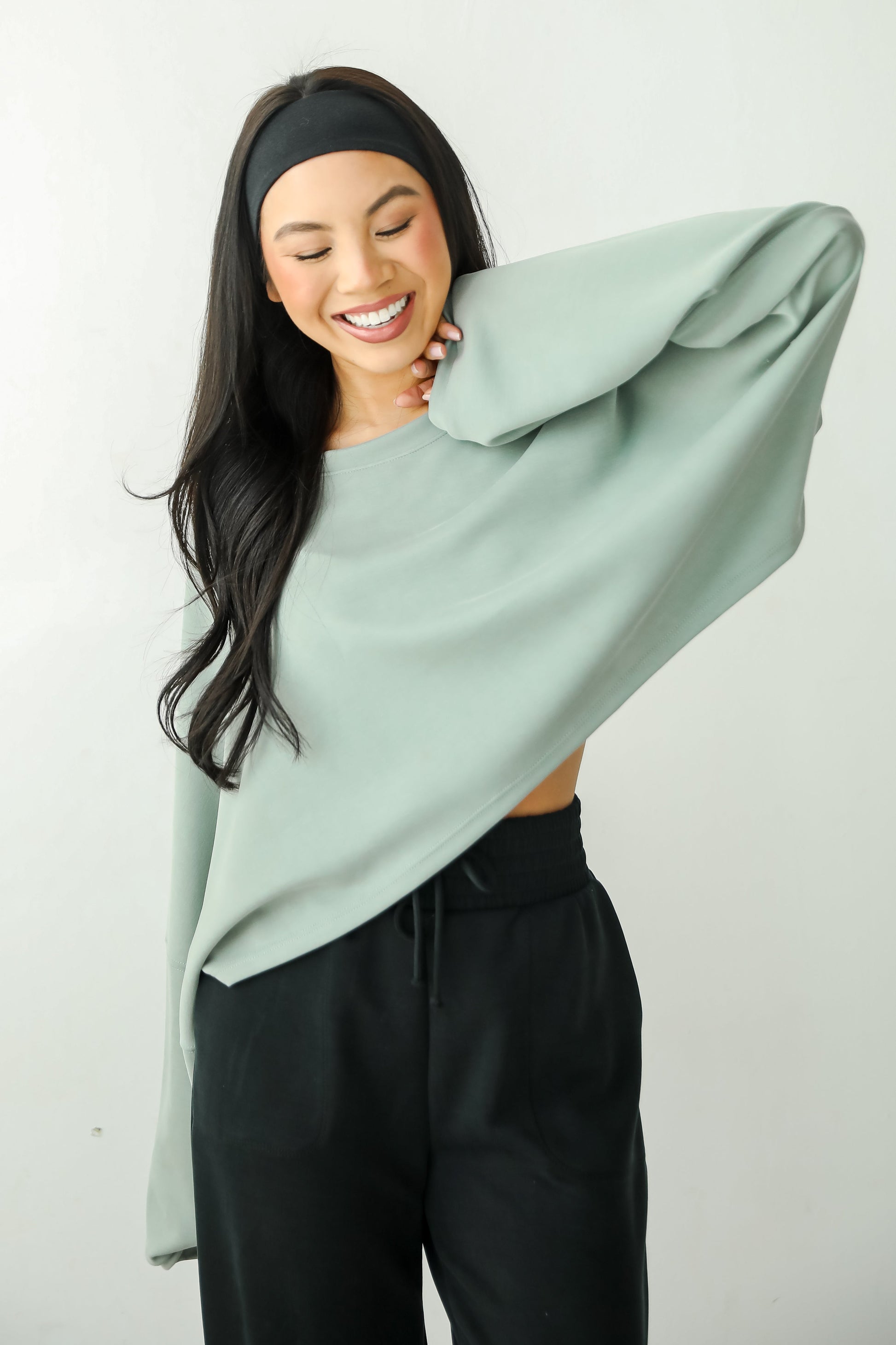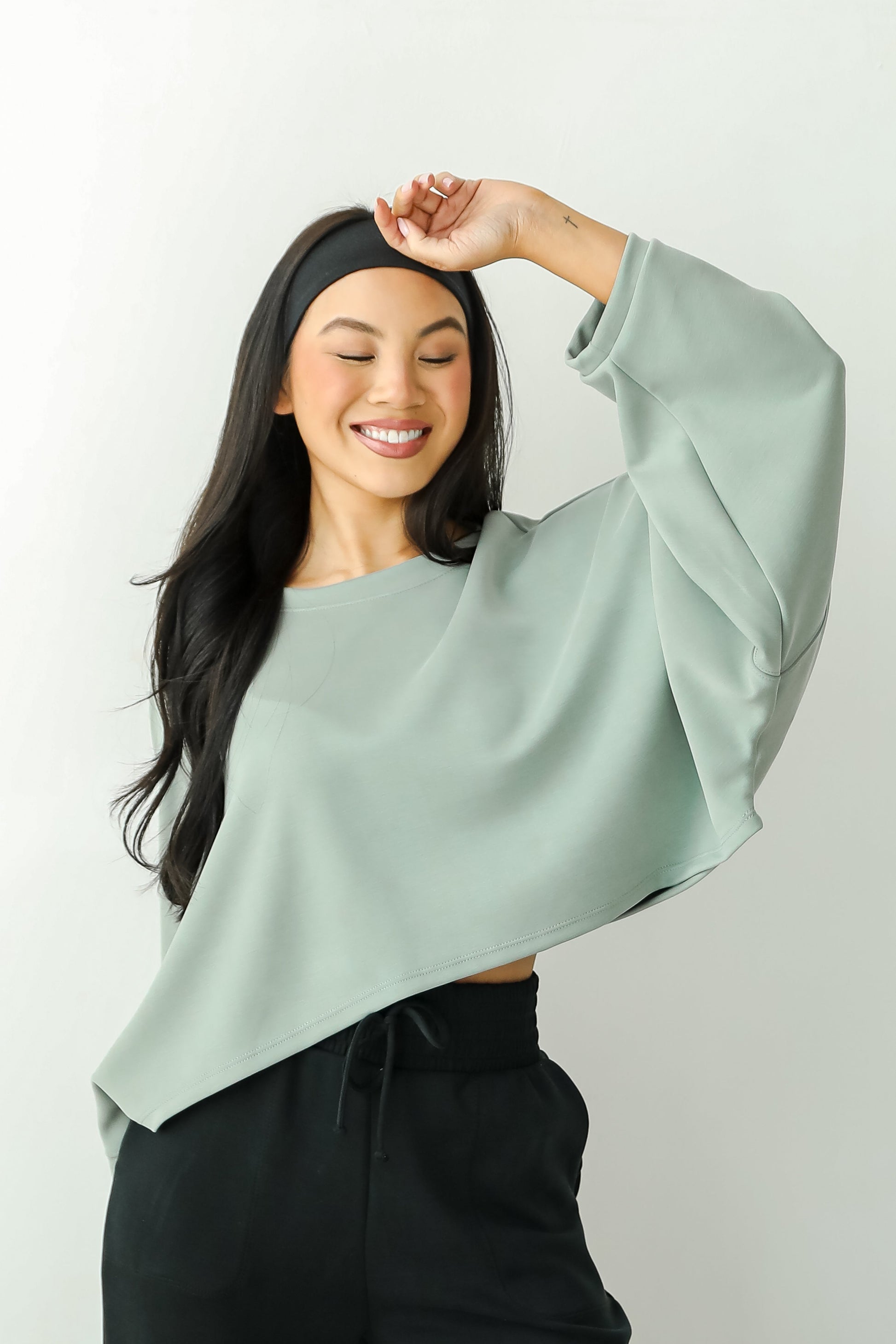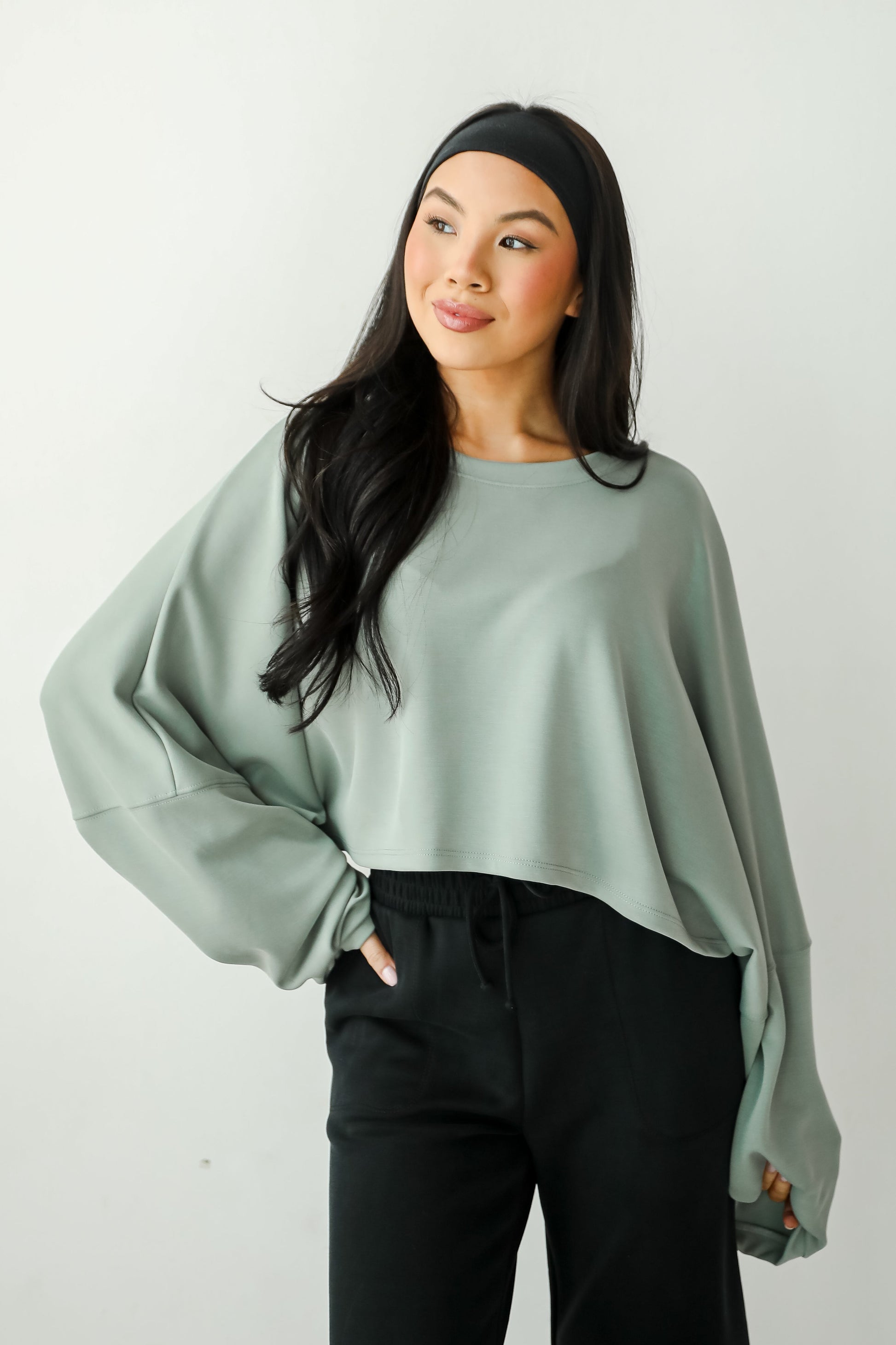 Embrace all-day comfort with the Ultra Air Soft Top! Made from a soft and breathable fabric. it offers a comfortable fit that's ideal for layering or wearing on its own. The cropped length pairs beautifully with high-waisted jeans. skirts. or shorts. creating a flattering silhouette. With its simple. classic design and long sleeves. this top is perfect for transitioning between seasons. Whether you're running errands or meeting friends for a casual outing. this top adds just the right amount of laid-back charm to any outfit! Available in 2 colors.