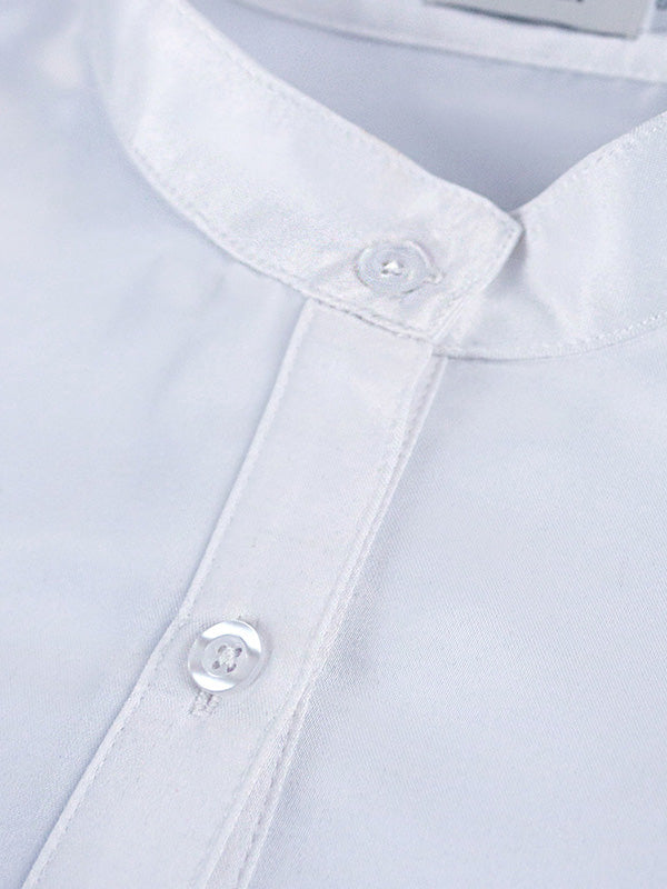Urban Buttoned Solid Color Stand Collar Flared Sleeve Loose Midi Dress