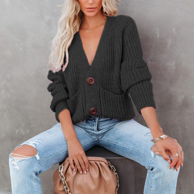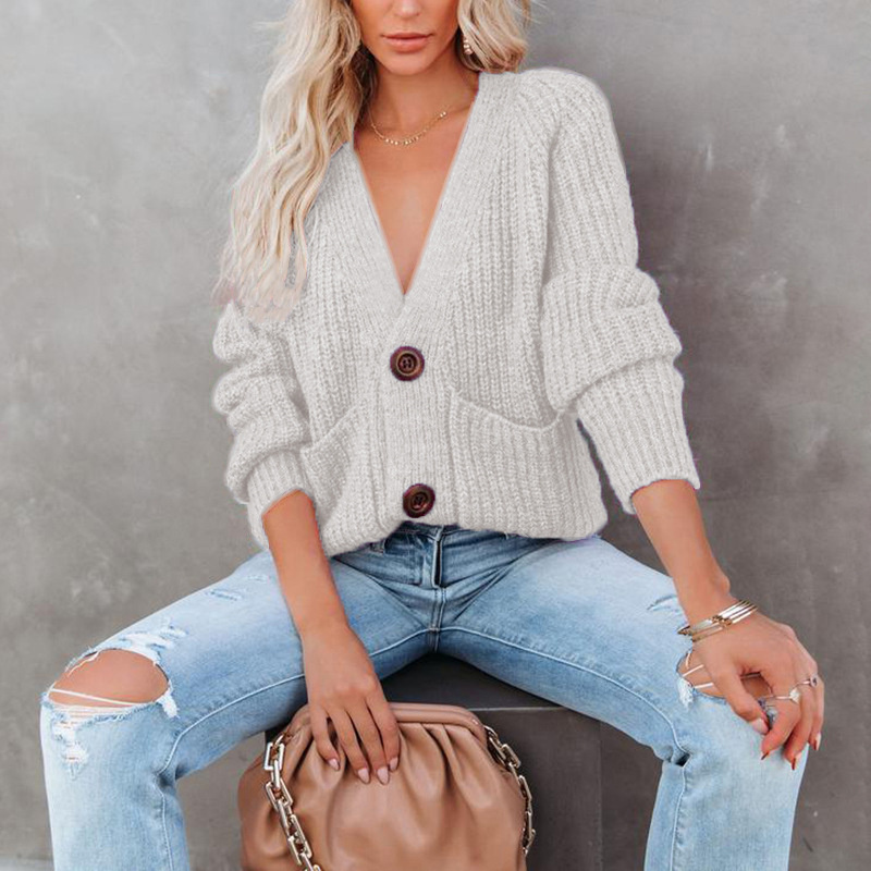 V-neck cardigan jacket coat women Fashion knitwear sweaters