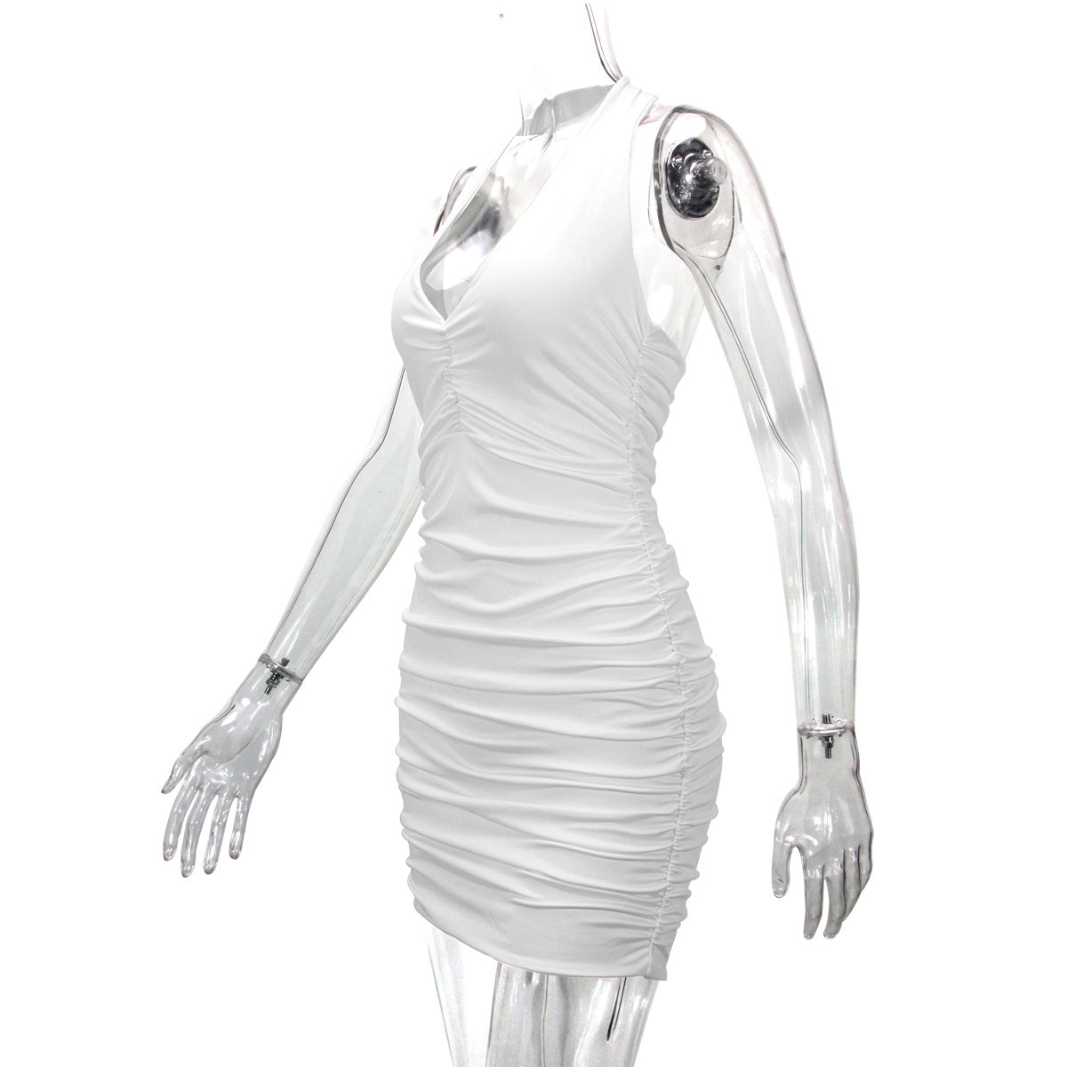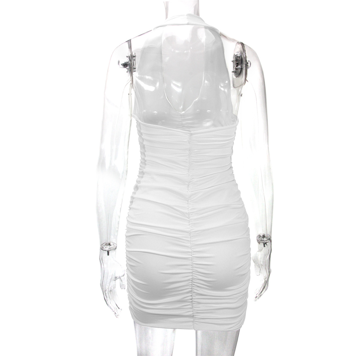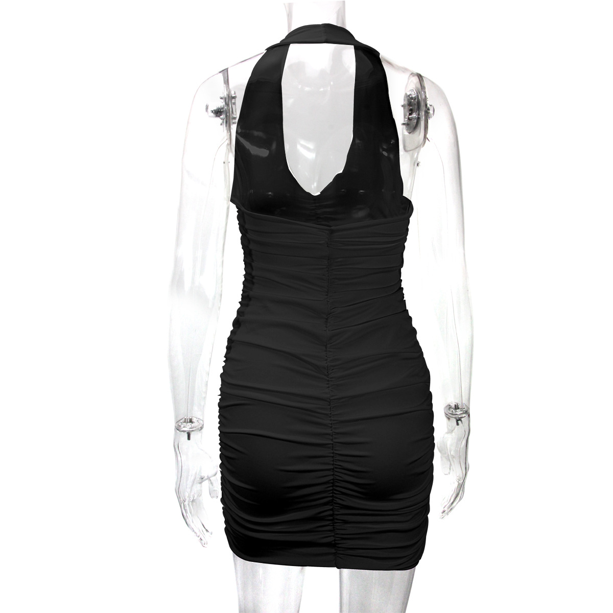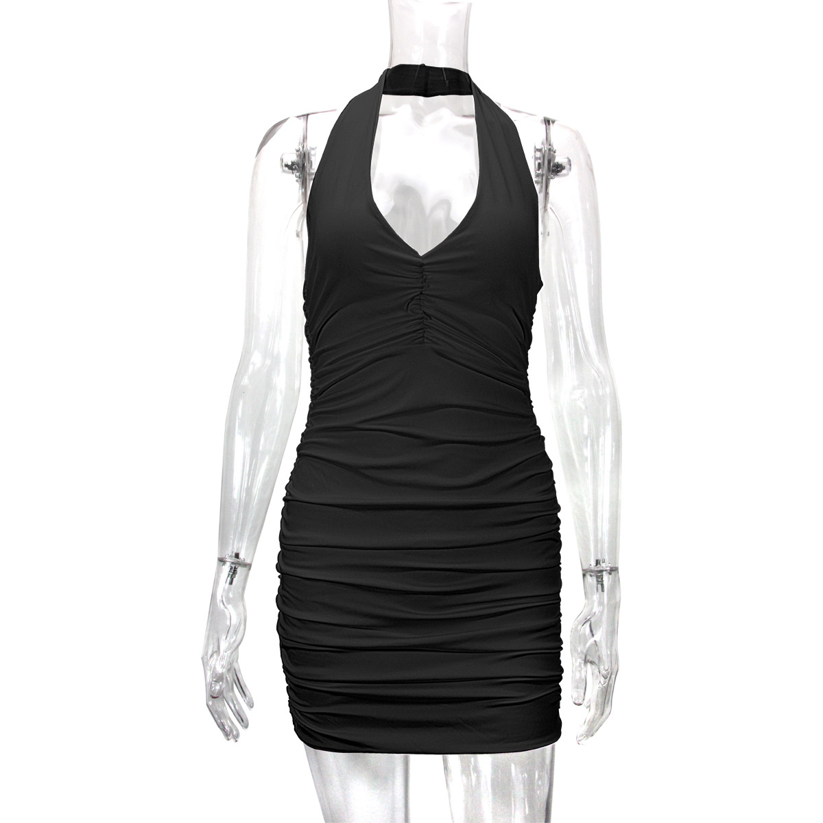 V-neck halter backless off-shoulder sexy minimalist pleated dress