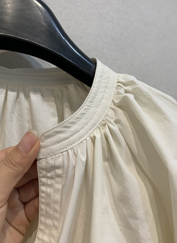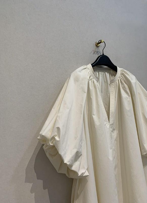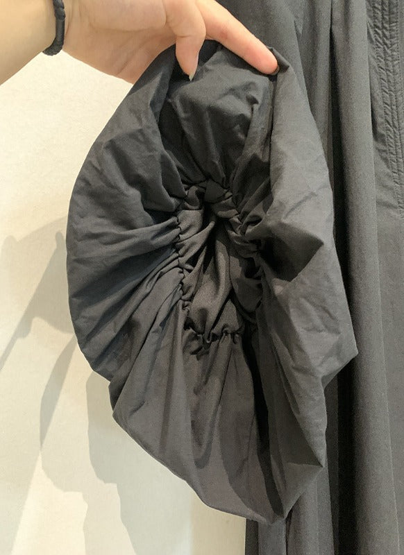 V-Neck Loose Casual Puffy Sleeves Solid Color Maxi Dress