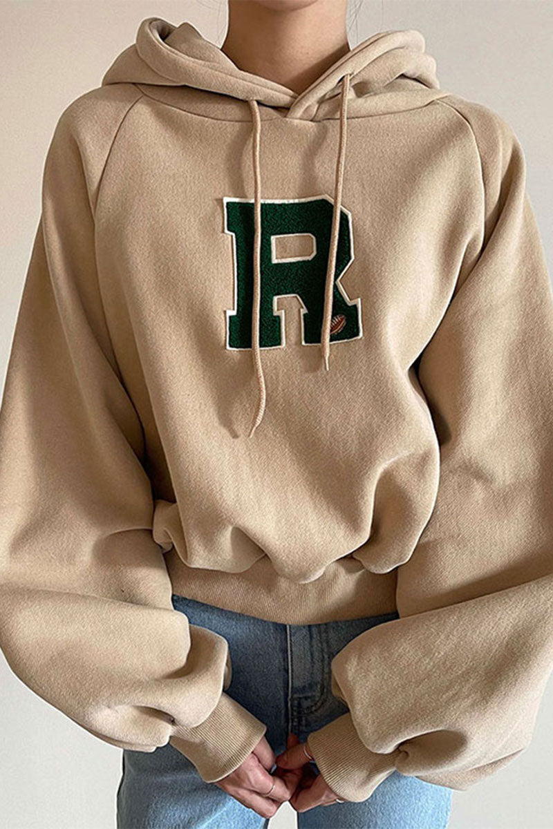 Versatile Embroidered Hooded Long Sleeve Sweatshirt