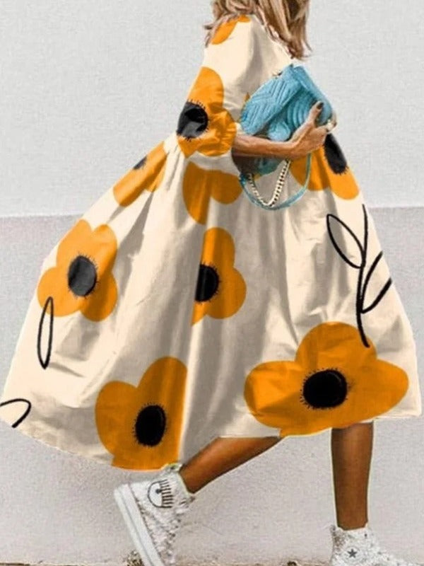 Vintage Floral Print High Low Hem A-Line Midi Dress