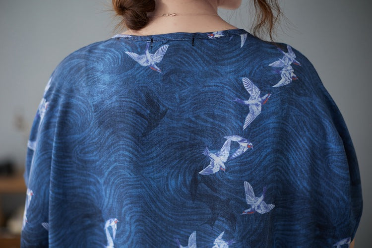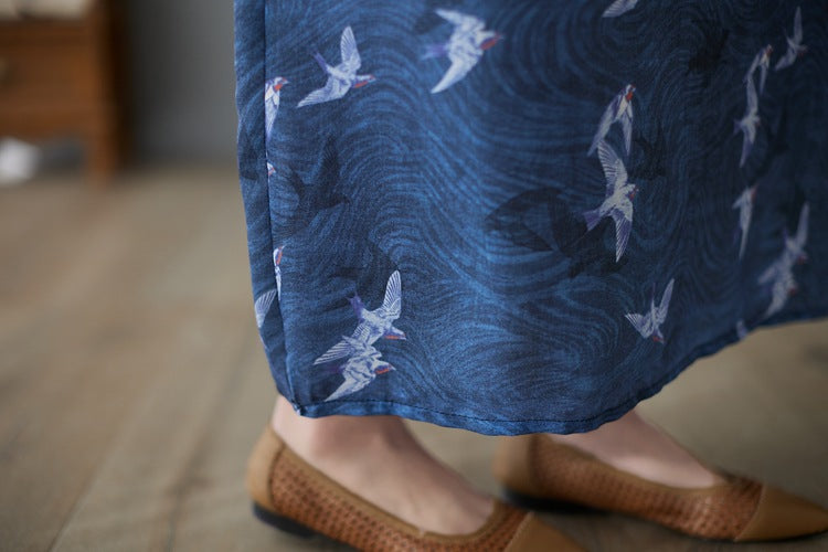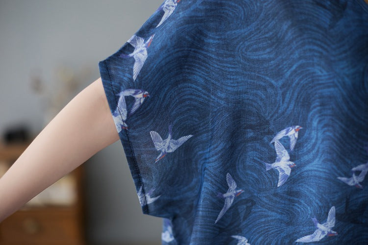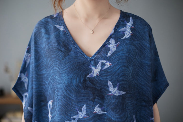 Vintage Print V-neck Short Sleeve Maxi Dress
