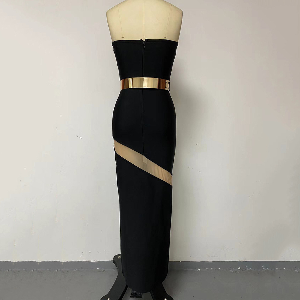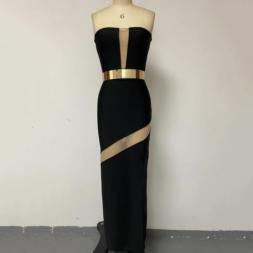 Women Sexy Tube Top Backless Mesh See-Through Bandage Dress