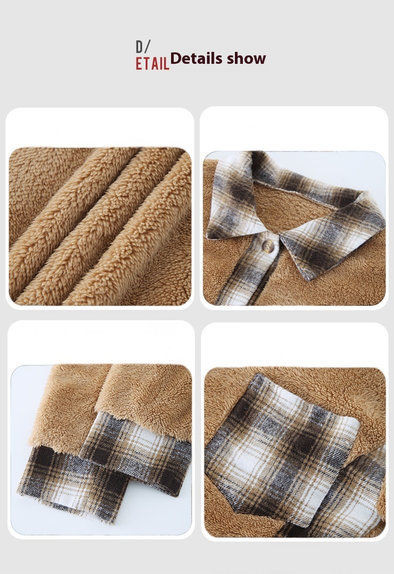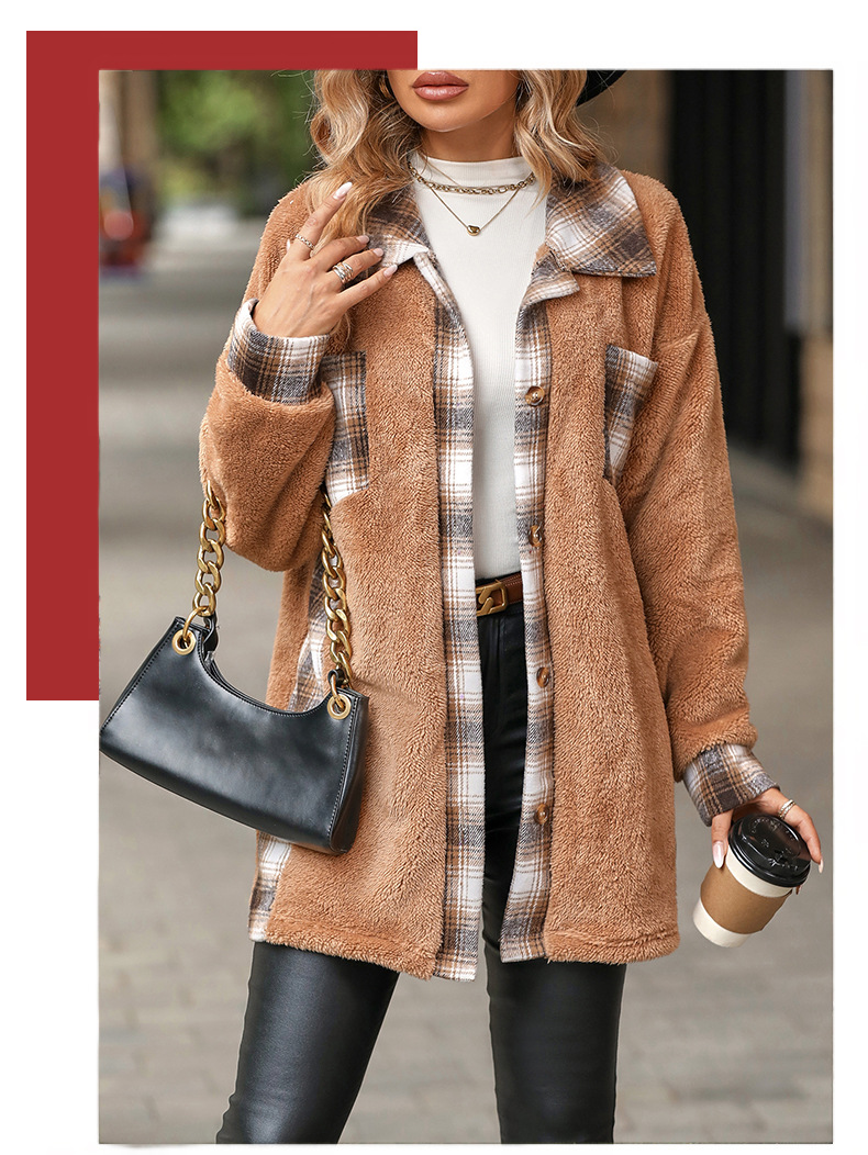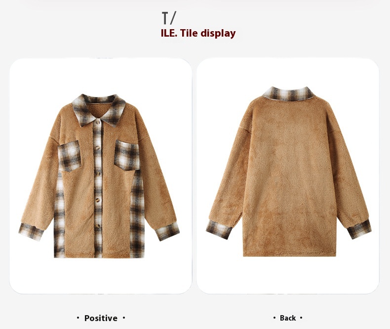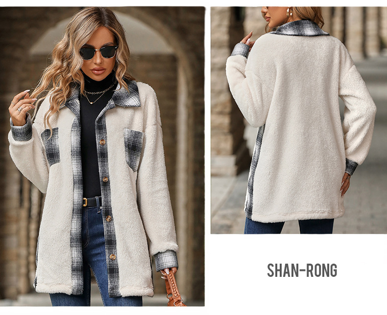 Women's autumn and winter New single-breasted lapel mid-length Plaid plush coat