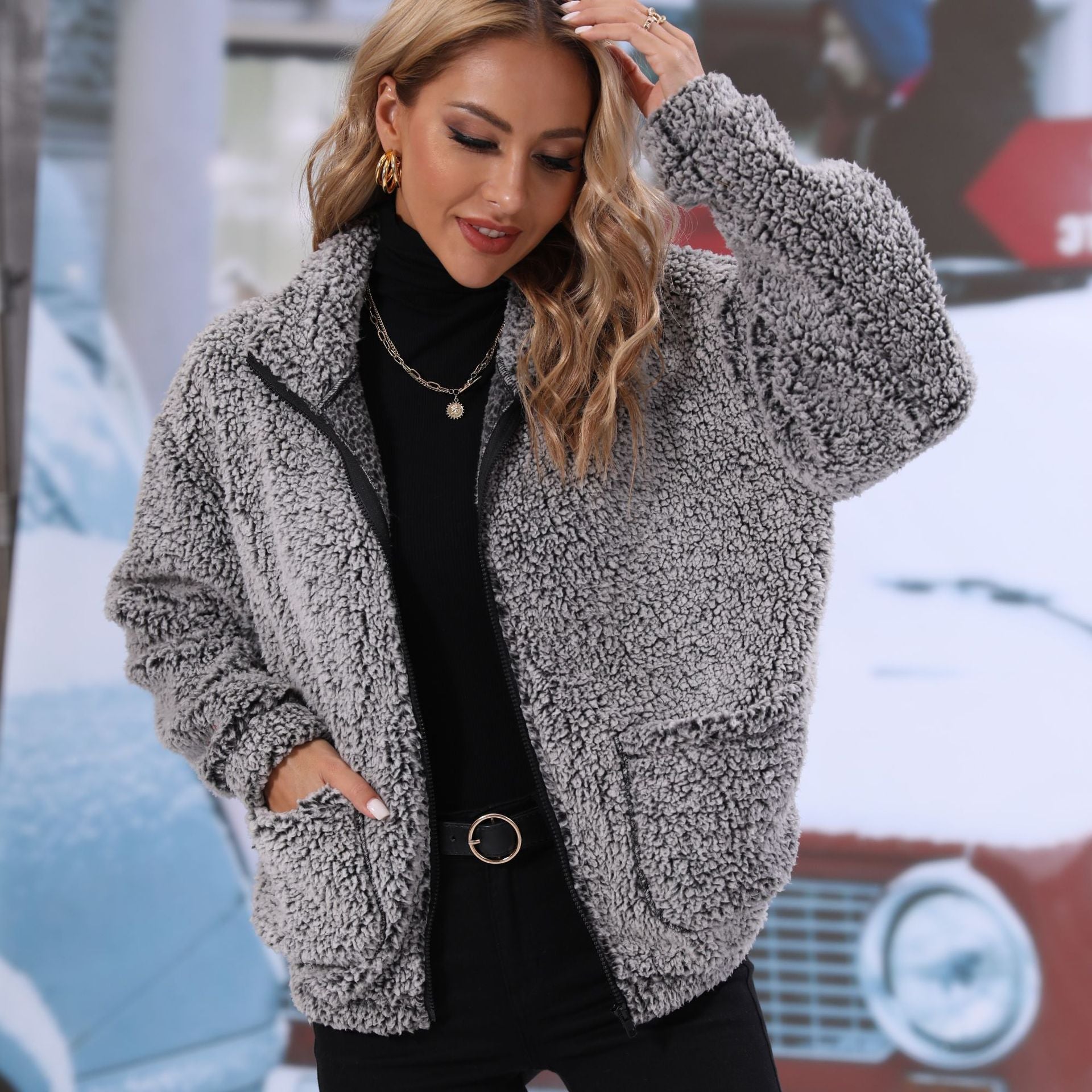 Women's autumn clothing lapel long sleeve zipper double-sided bubble velvet loose casual jacket