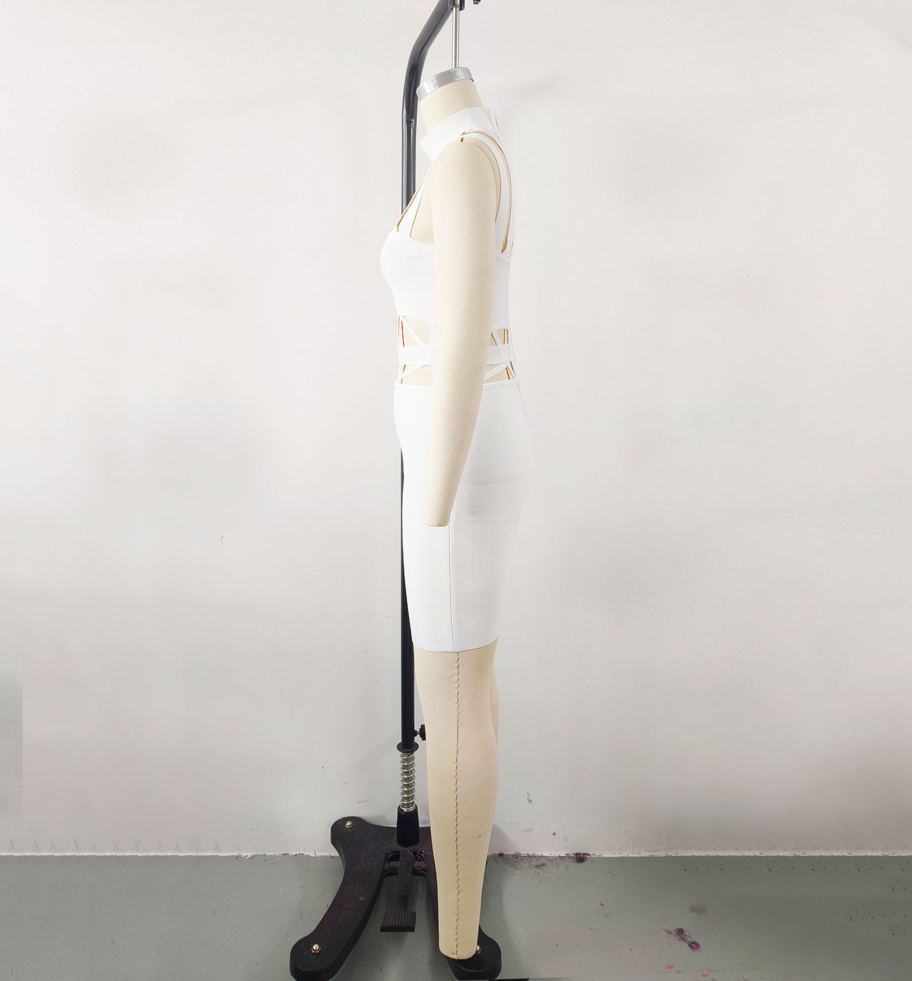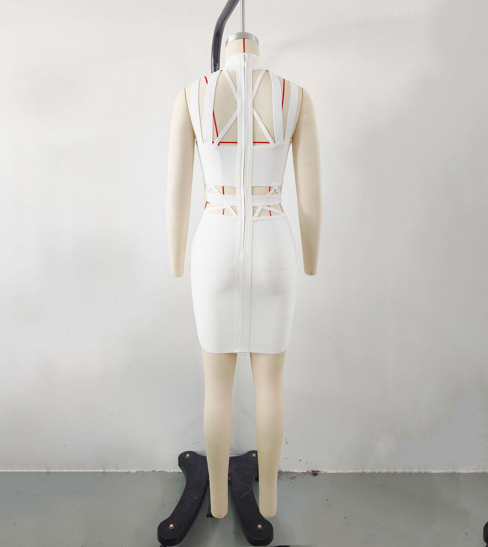 Women's autumn sexy cutout knitted white suspender dresses Bandage dress