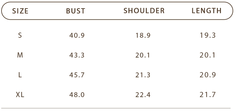 1. Measurements are taken with the garment laying flat. Measurements are approximate - please allow up to a 1/2" tolerance for each measurement.