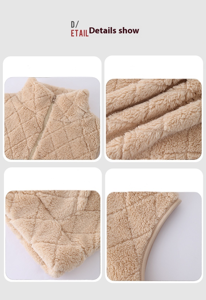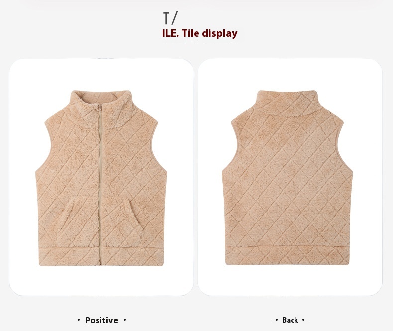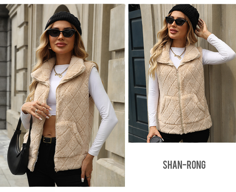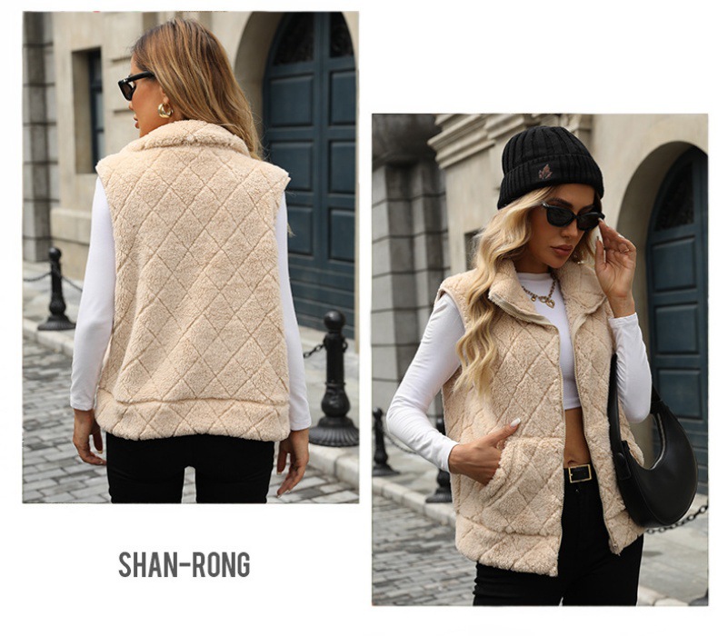 Women's clothing autumn and winter cardigan loose zip diamond lattice coat plush vest(2025)
