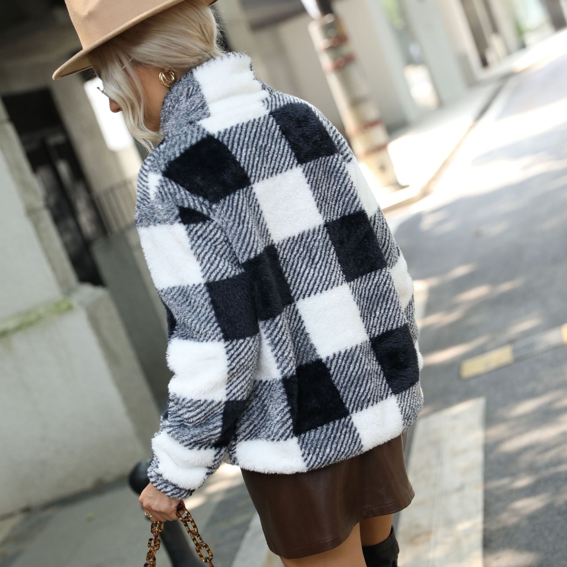 Women's long sleeve pullover plaid printed round neck double-sided velvet regular plush pullover sweater