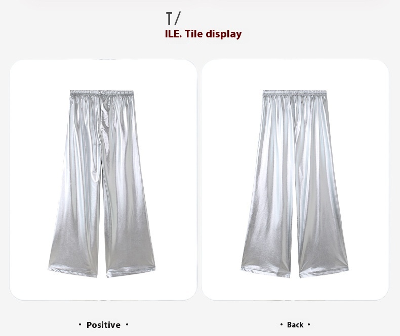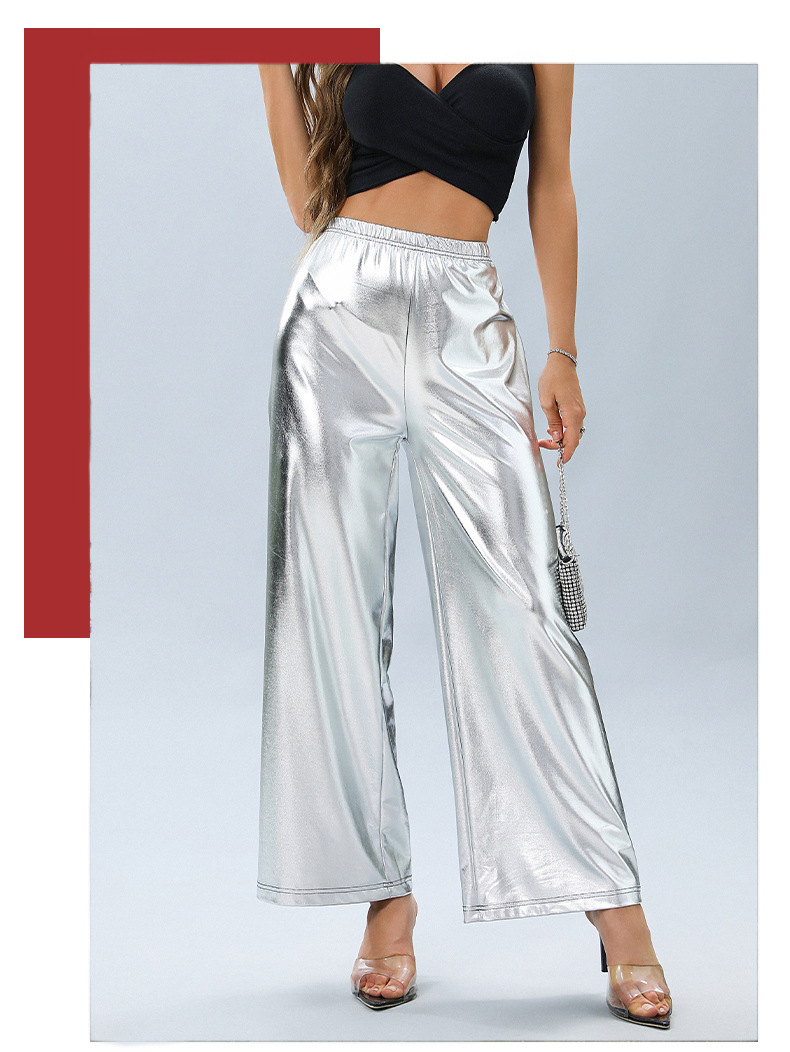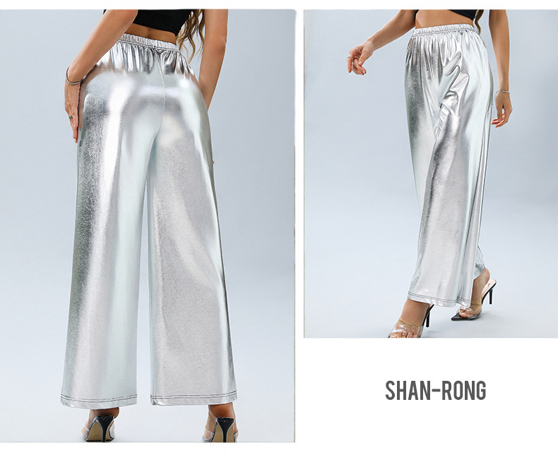Women's trousers hot silver loose high waist wide leg women's casual trousers