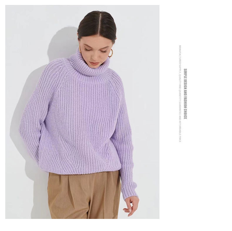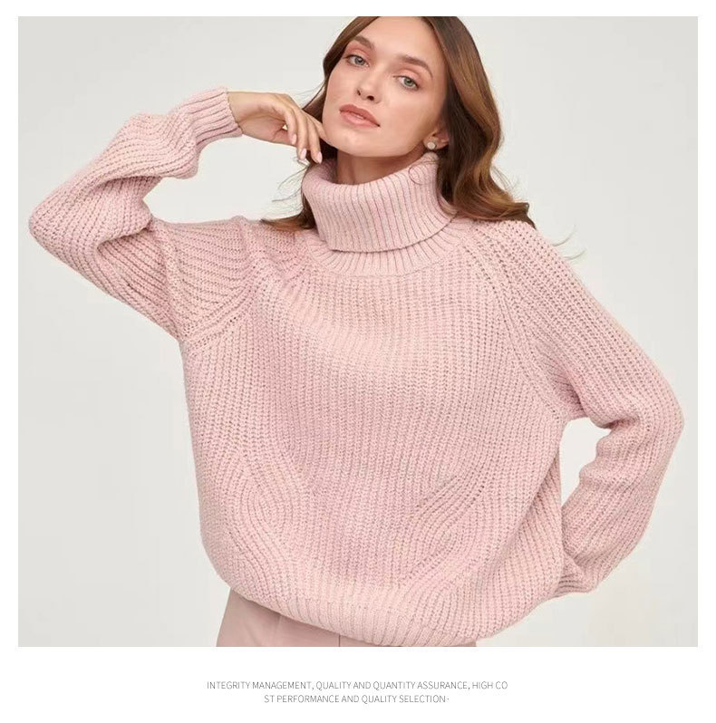 Women's turtleneck sweater knitted loose thickened autumn and winter solid color casual mid-length pullover top