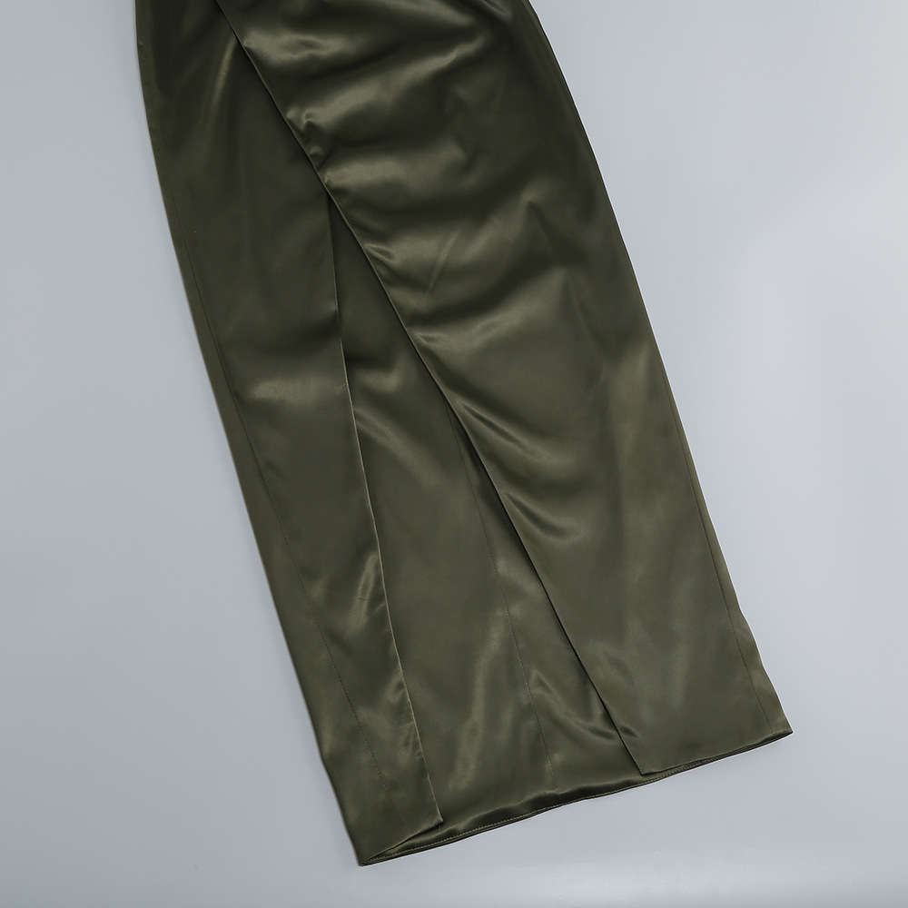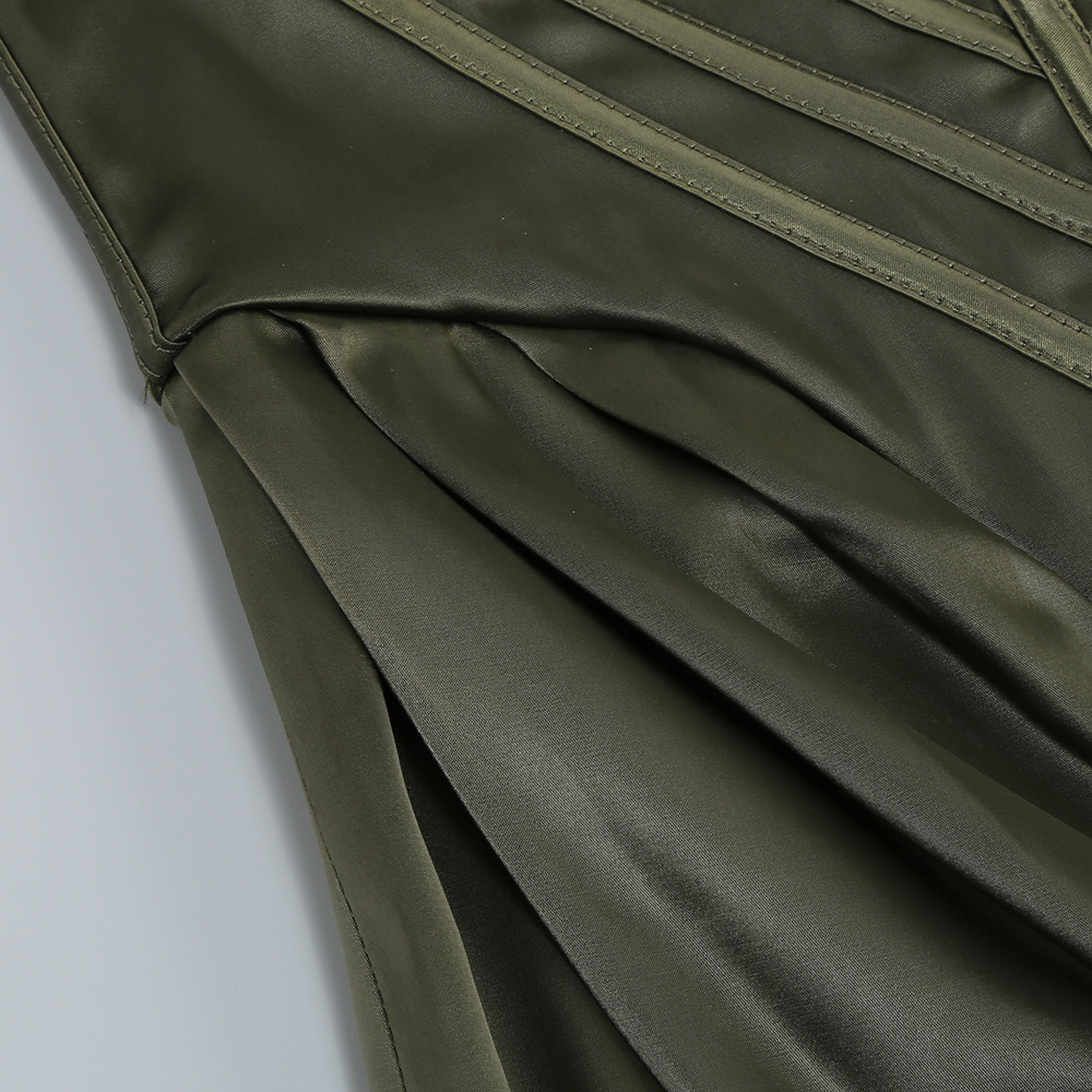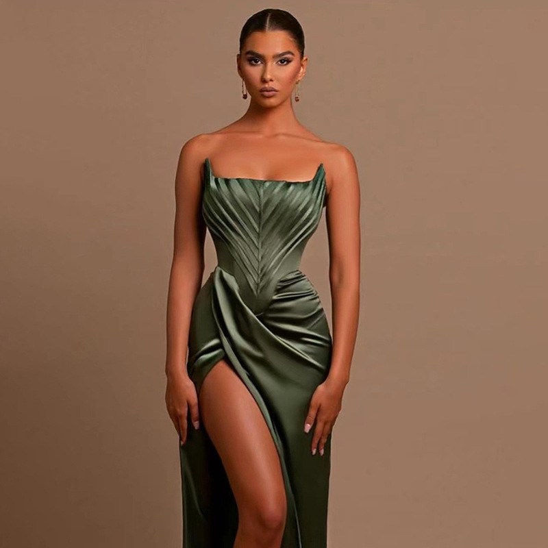 Wrapped Chest Fishbone Drawstring Slim Split Long Dress Party
