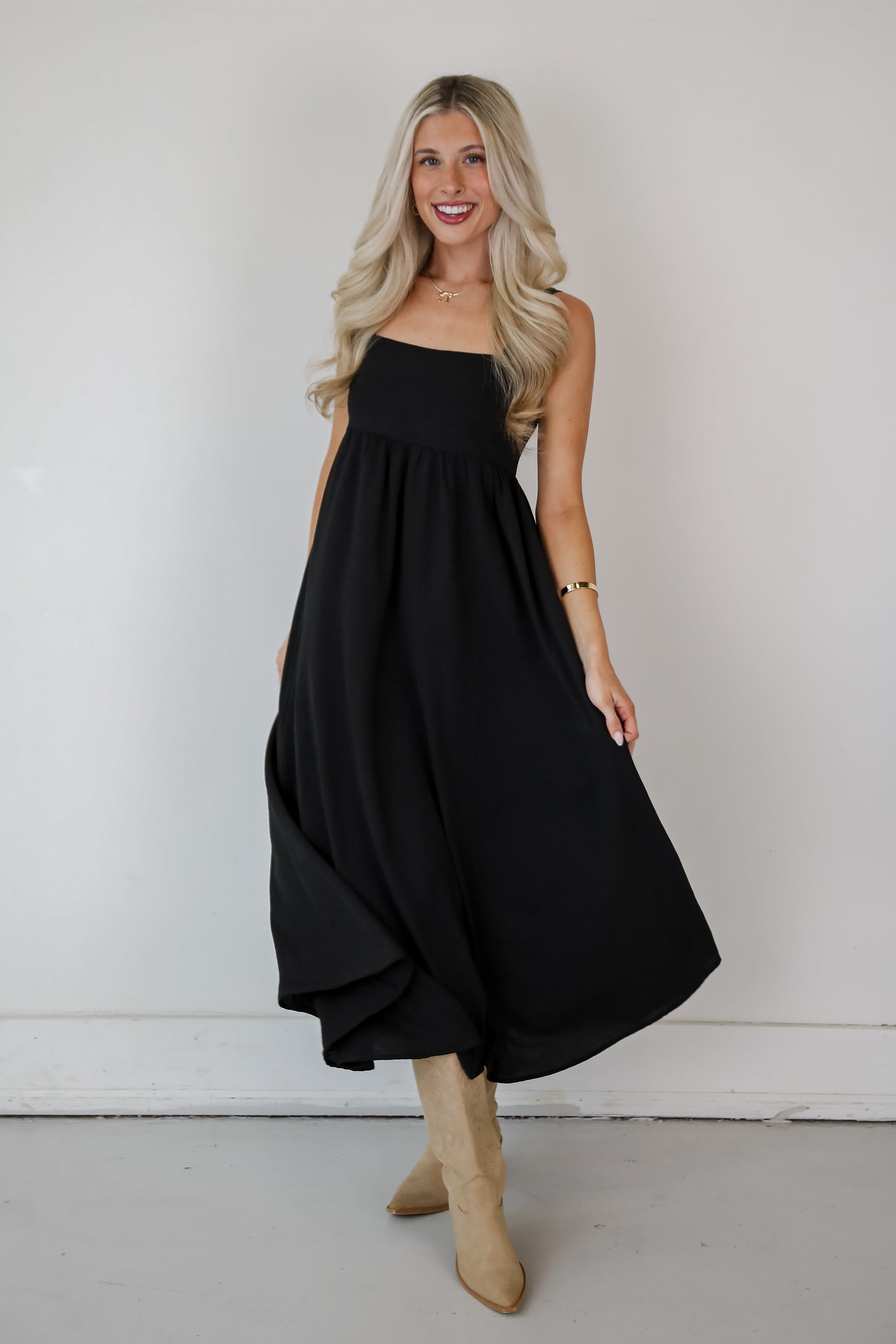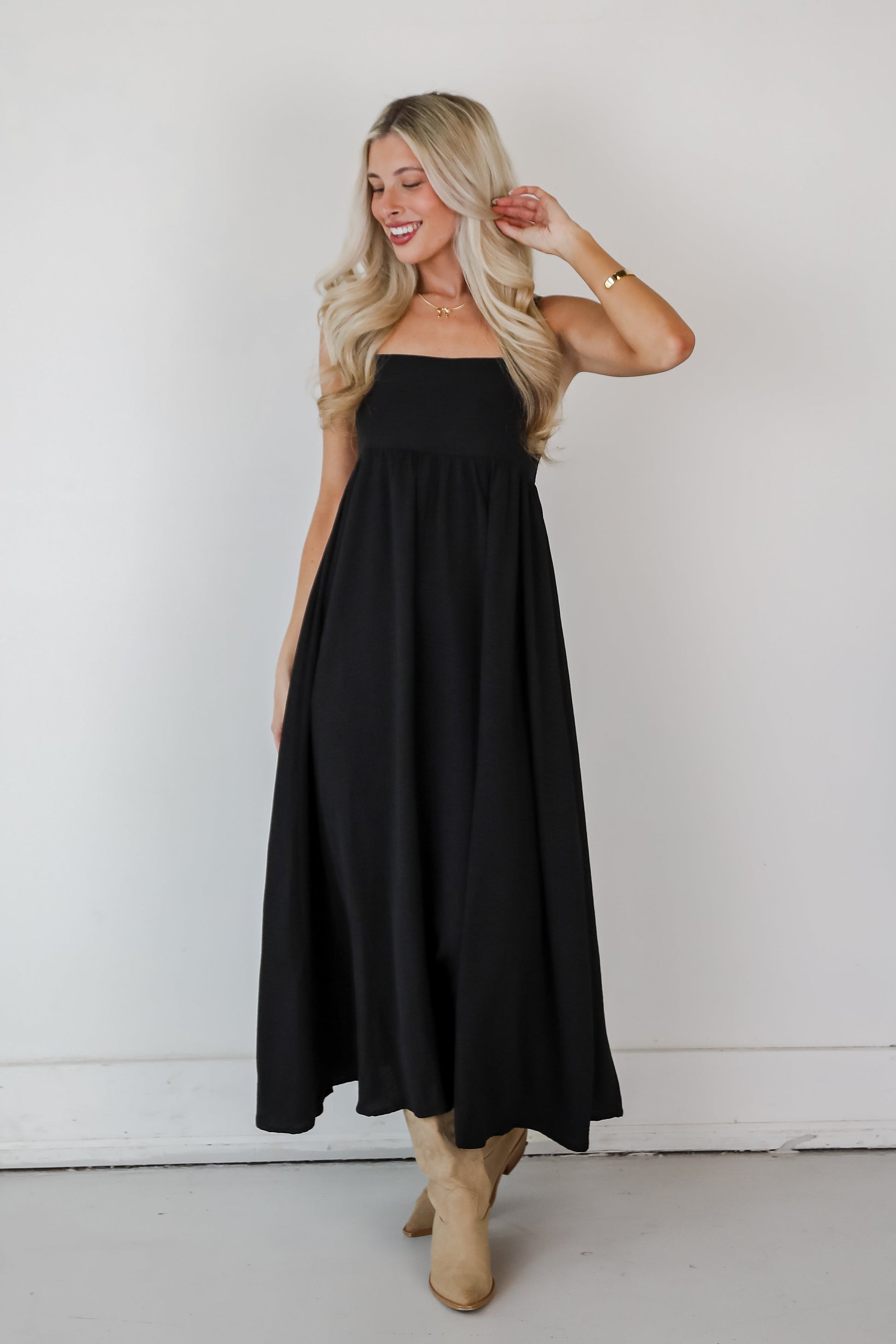 You'll be everyone's one true love with the Your Only Darling Black Maxi Dress! Designed with adjustable spaghetti straps and a flattering flowy silhouette. this dress drapes beautifully for a breezy. feminine look. The lightweight fabric moves with you. making it perfect for everything from beach vacations to evening outings. Whether styled with sandals for a casual day out or heels and statement jewelry for a dressy occasion. this maxi dress is the ultimate go-to for timeless. effortless style!